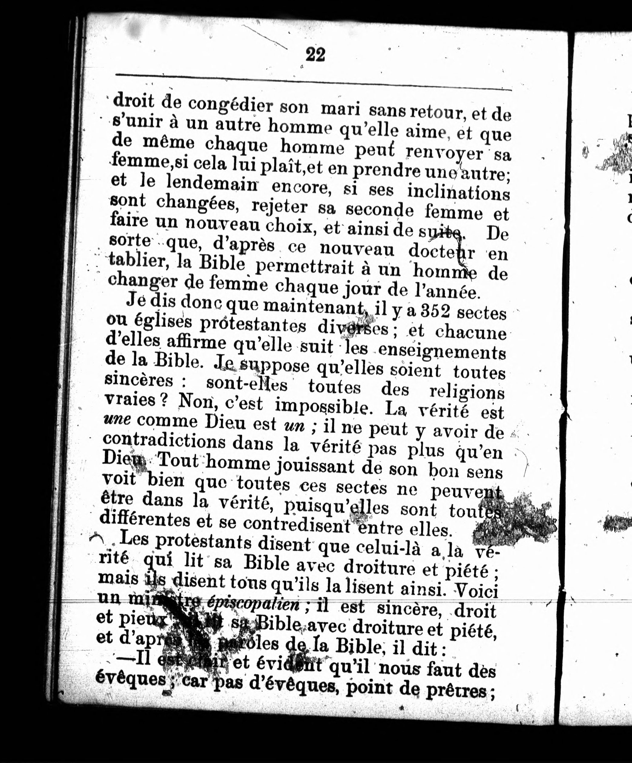 - Conférence donnée à la cathédrale d'Ottawa par le R.P. Damen, S. J., 1871 : la Bible ne suffit pas pour enseigner [1]es vérités nécessaires au salut.
