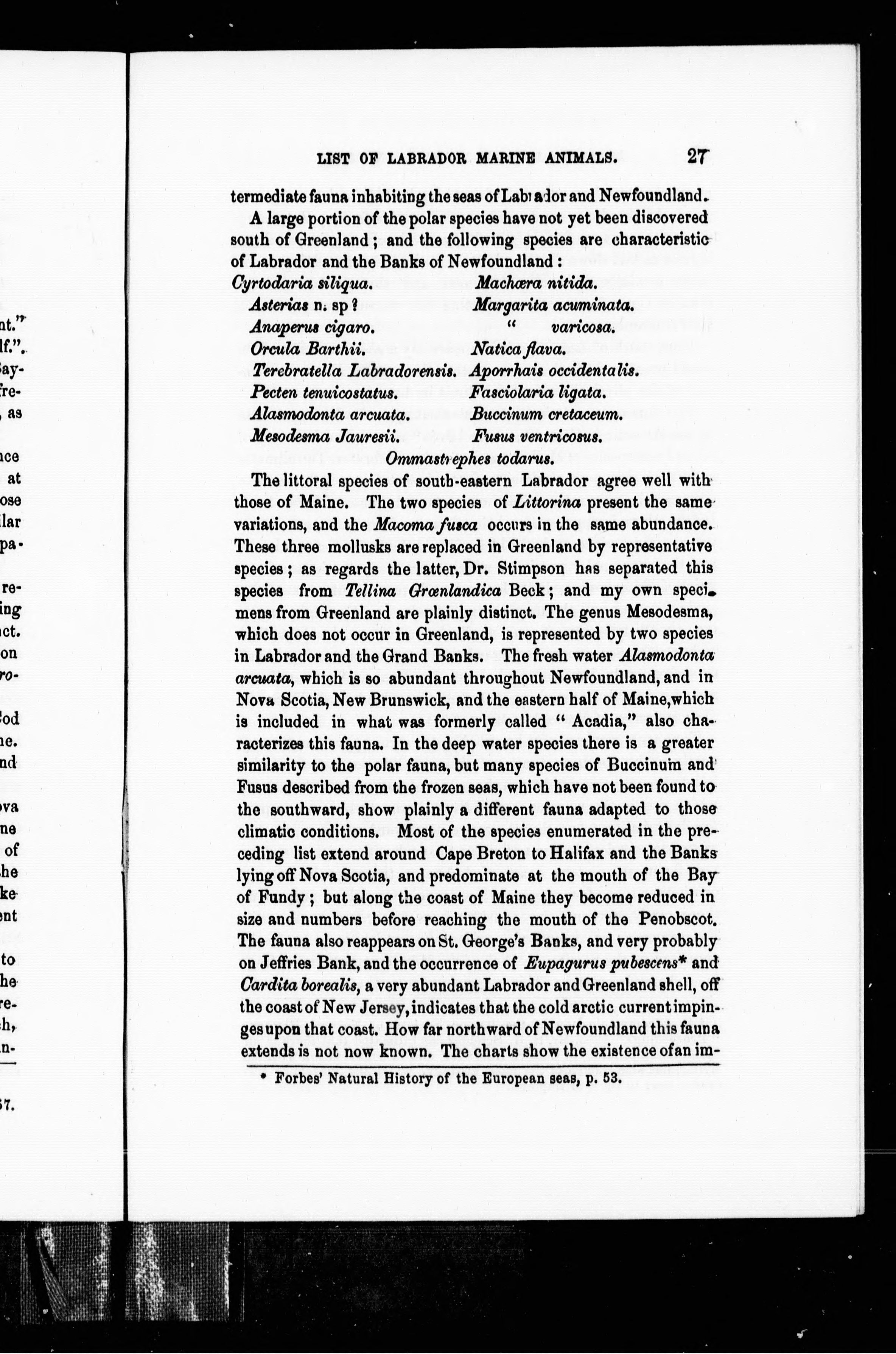 - A list of animals dredged near Caribou Island, southern Labrador during July and August, 1860