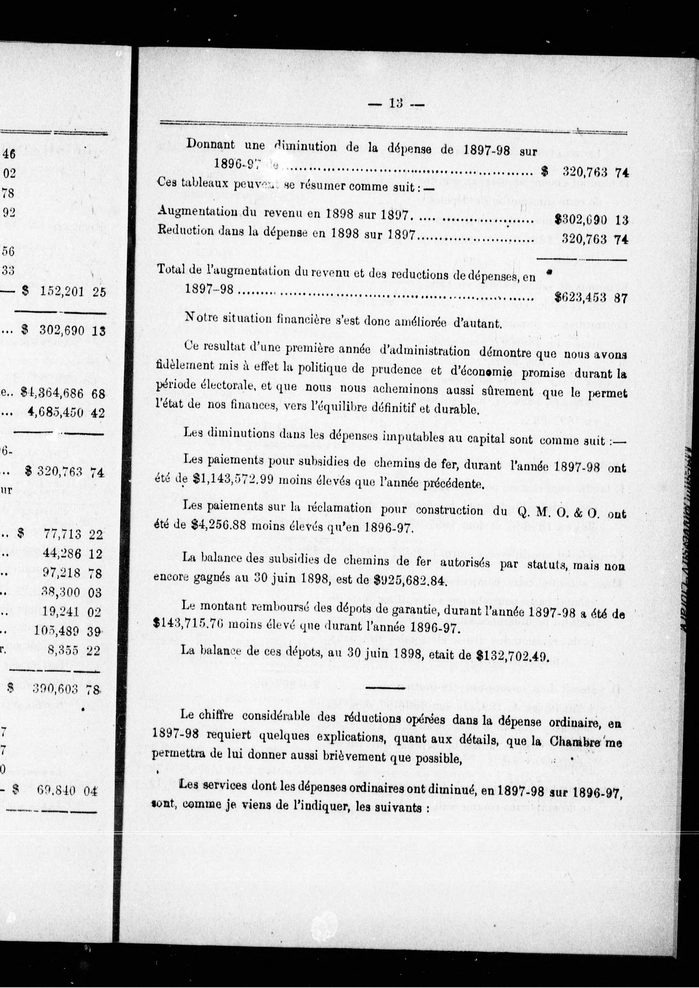 Discours sur le budget prononcé par l'Honorable F.G. Marchand, trésorier de la province à l'Assemblée législative de Québec le 7 février 1899.
