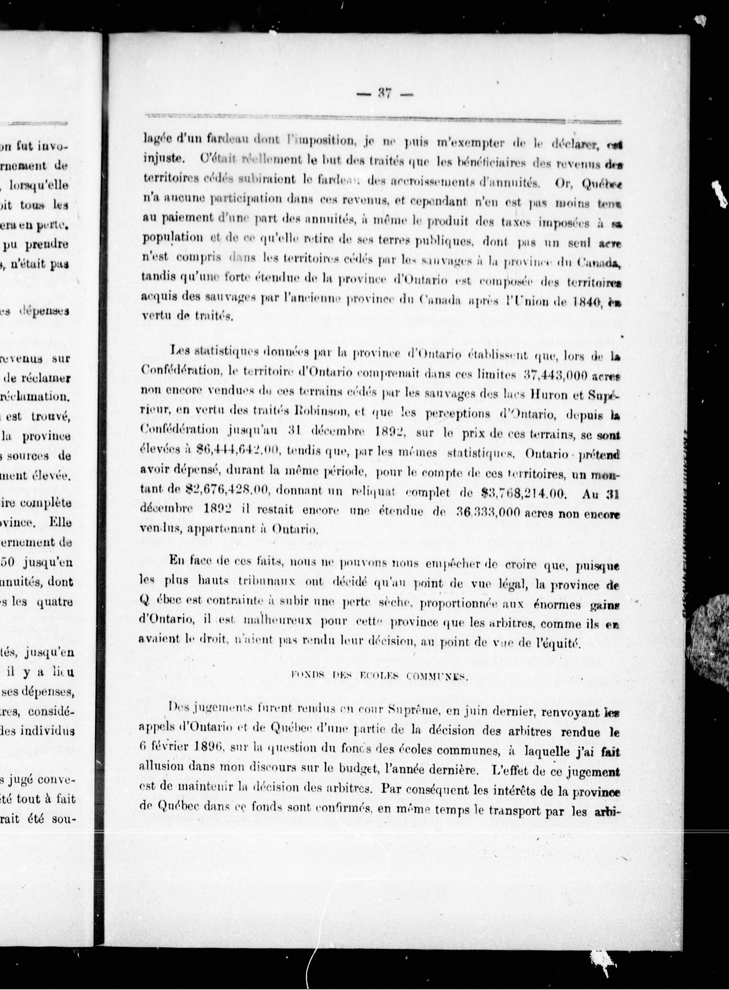 Discours sur le budget prononcé par l'Honorable F.G. Marchand, trésorier de la province à l'Assemblée législative de Québec le 7 février 1899.