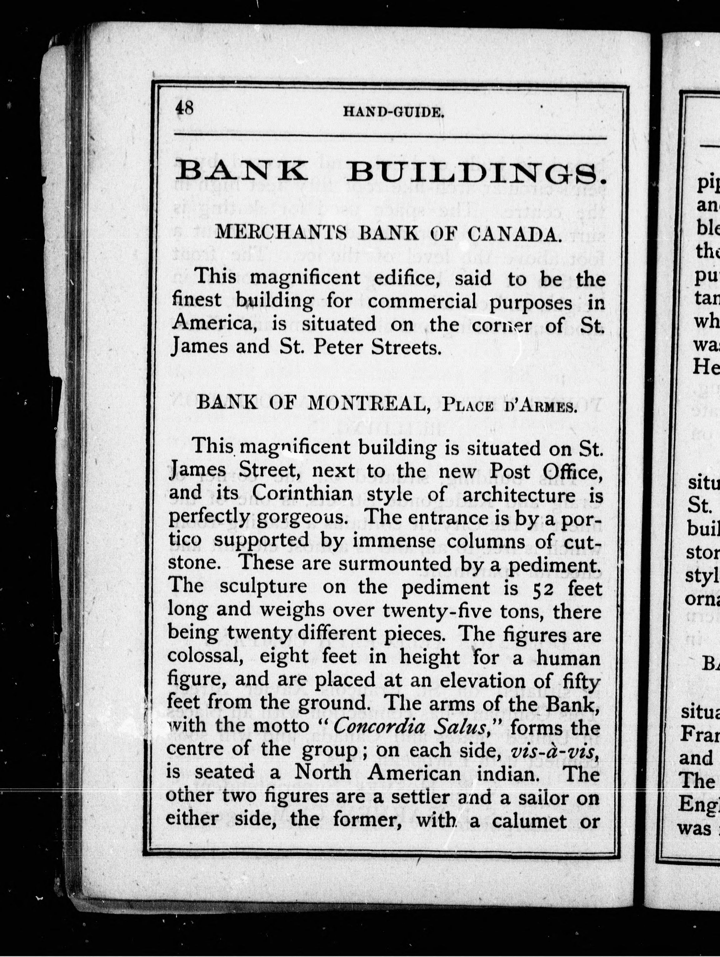 - Hand-guide to Montreal, with map of the city : containing all necessary information and advice for strangers, including rates of money, carriage tariff, institutions and other places of interest to visit, when and how to see them, fancy and fashionable stores, &c.