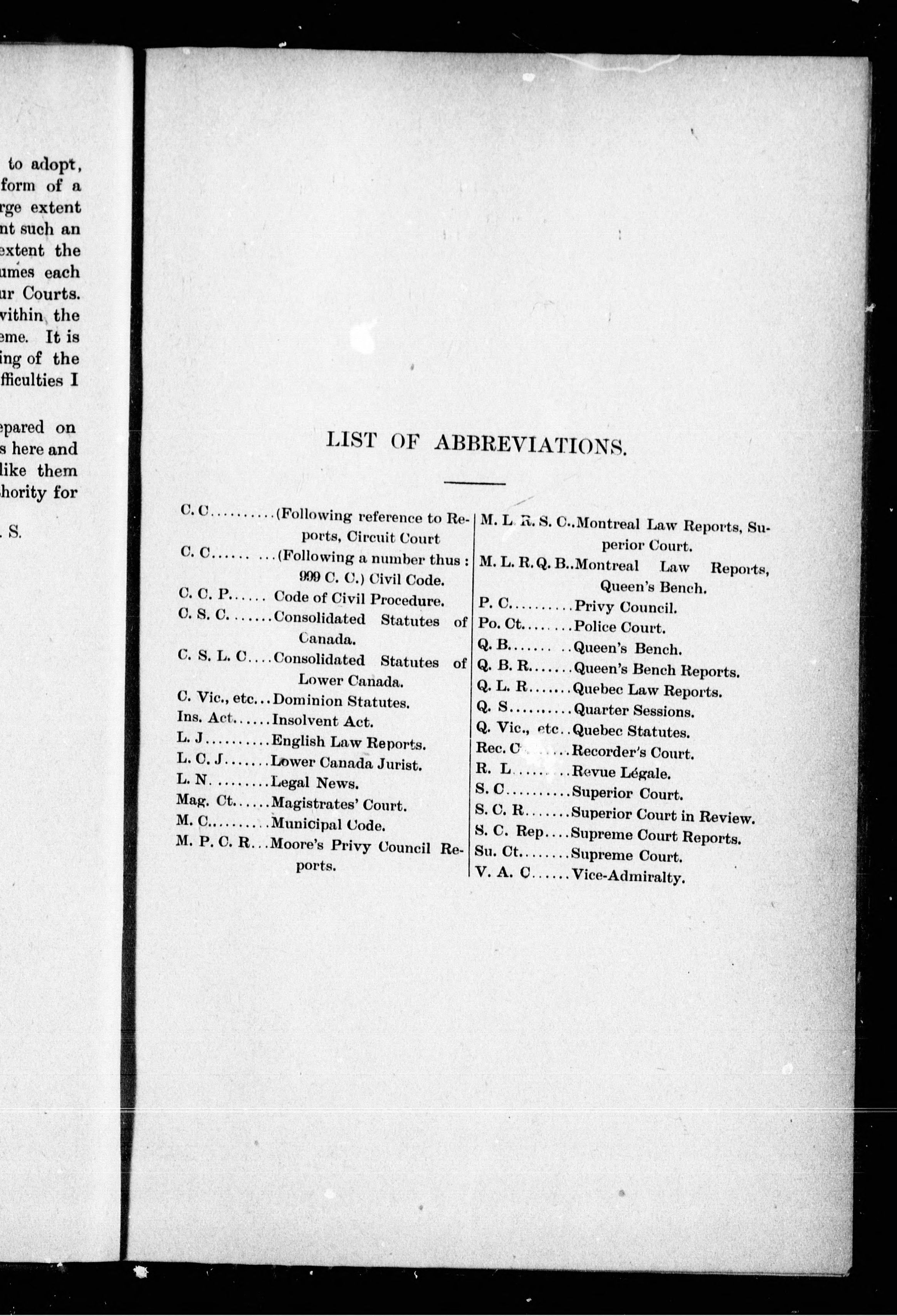 The Quebec law digest ... : being a complete compilation of all the reported decisions in the Province of Quebec, from the first January, 1885, to the first January, 1890 : together with a large number of important decisions, not otherwise reported : the whole analytically digested and arranged, with constant references to the codes and statutes in relation thereto