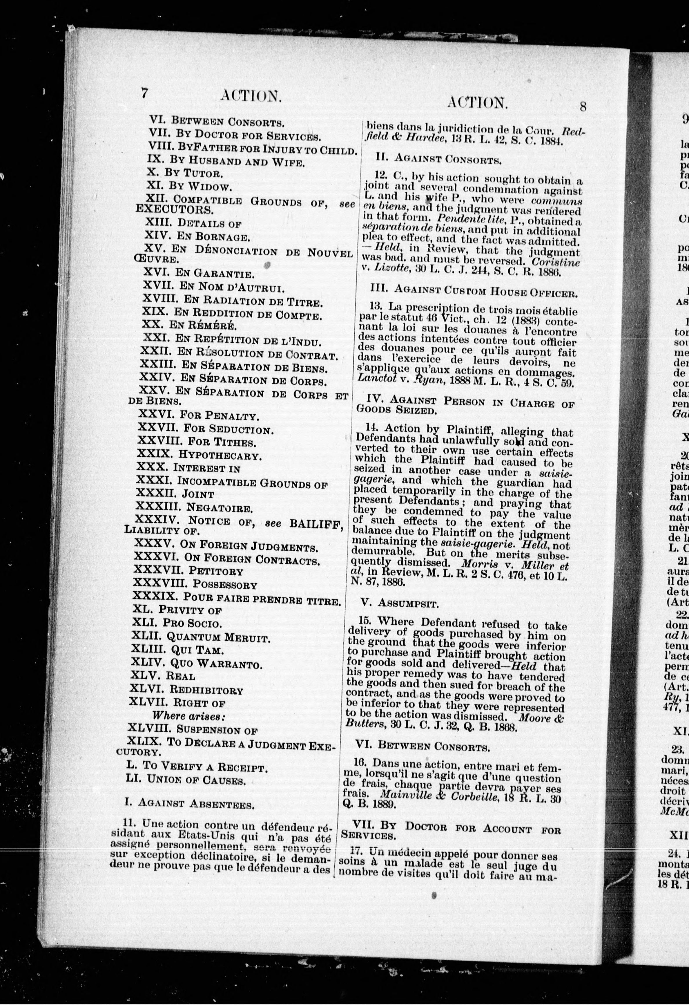 The Quebec law digest ... : being a complete compilation of all the reported decisions in the Province of Quebec, from the first January, 1885, to the first January, 1890 : together with a large number of important decisions, not otherwise reported : the whole analytically digested and arranged, with constant references to the codes and statutes in relation thereto