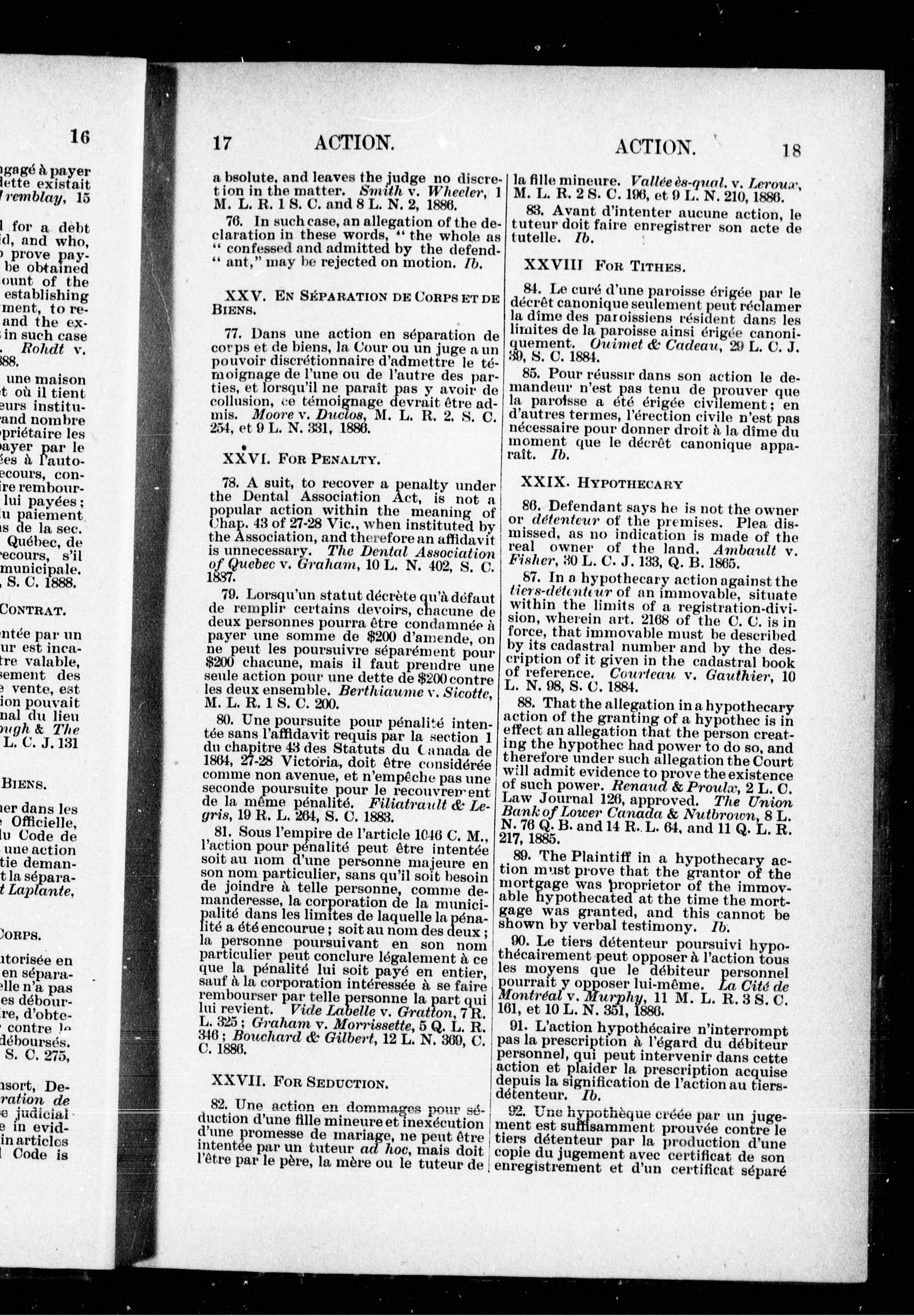 Montreal : A. Periard, Law Publisher, 1891.; 477 images, 470 avec recherche en texte intégral