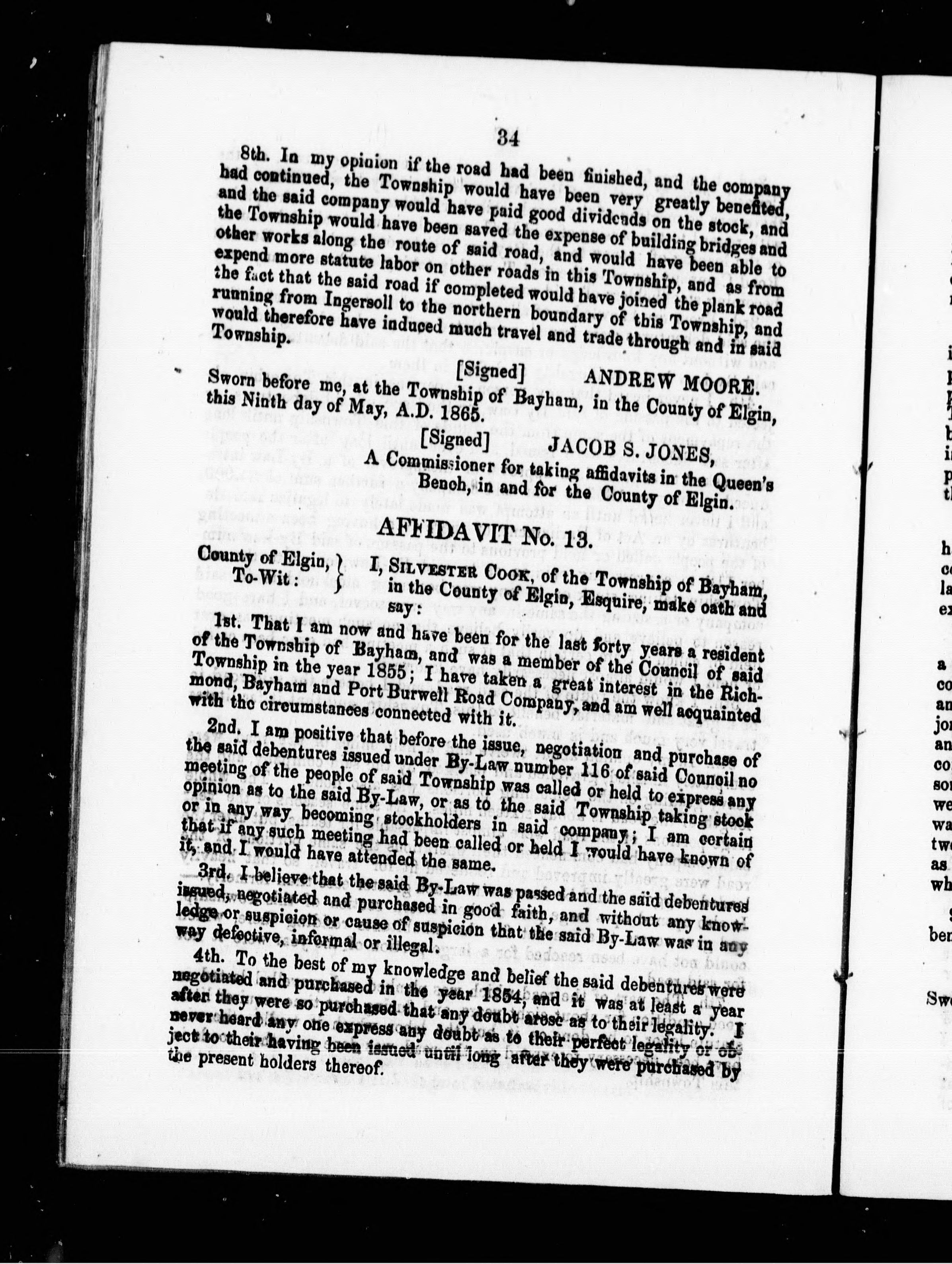 - Statement of facts connected with the issue of debentures under By-law no. 116 by the township of Bayham : with affidavits, & c., sought to be legalized by act of Parliament : Wilson & Matheson, attorneys for debenture-holders.