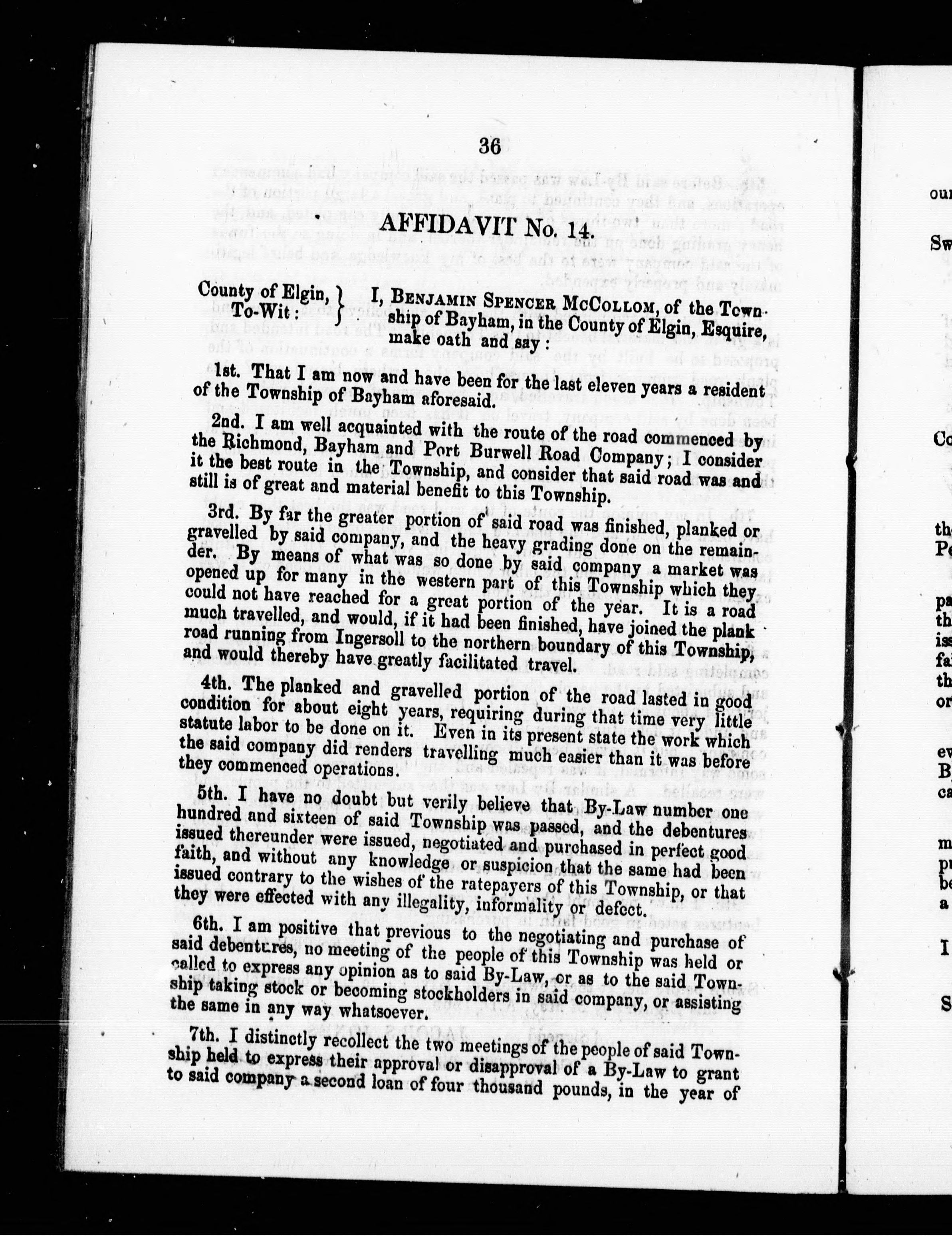 - Statement of facts connected with the issue of debentures under By-law no. 116 by the township of Bayham : with affidavits, & c., sought to be legalized by act of Parliament : Wilson & Matheson, attorneys for debenture-holders.