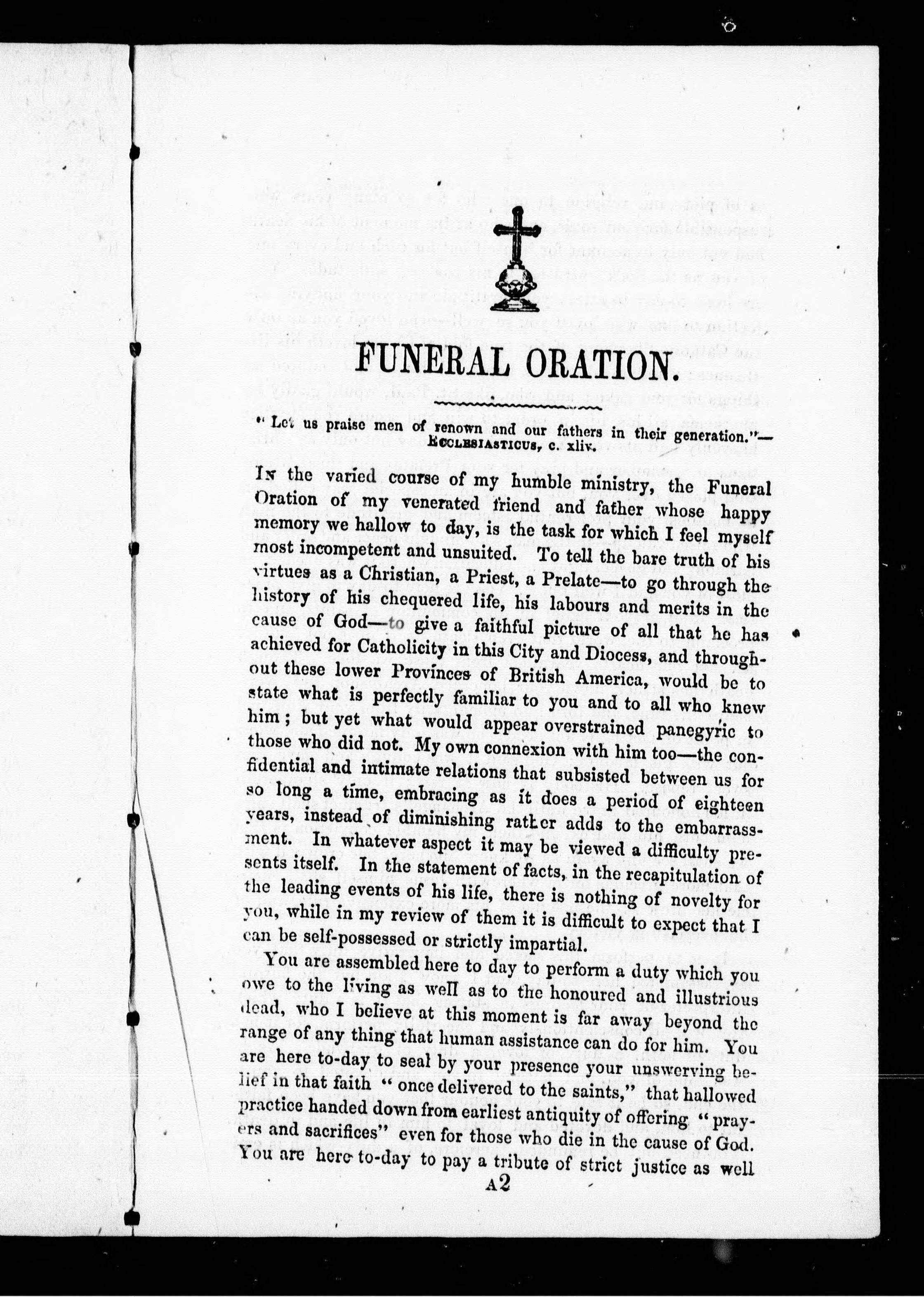 - Funeral oration, at the month's memory of His Grace the Most Rev. William Walsh, D.D., Archbishop of Halifax : delivered in the Metropolitan Church of Saint Mary's, on the 30th September, A. D., 1858