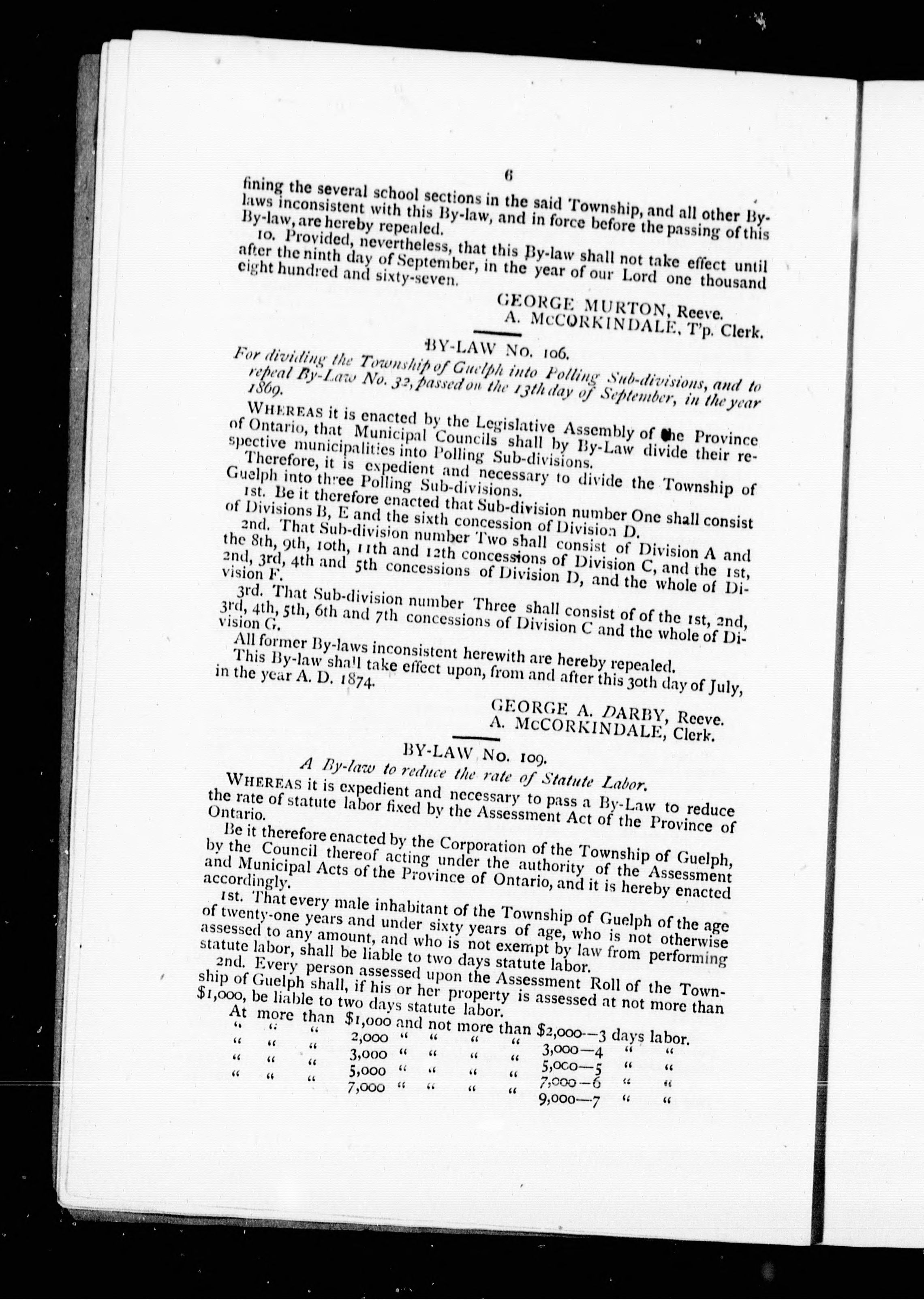 By-laws of the Municipal Council of the township of Guelph.