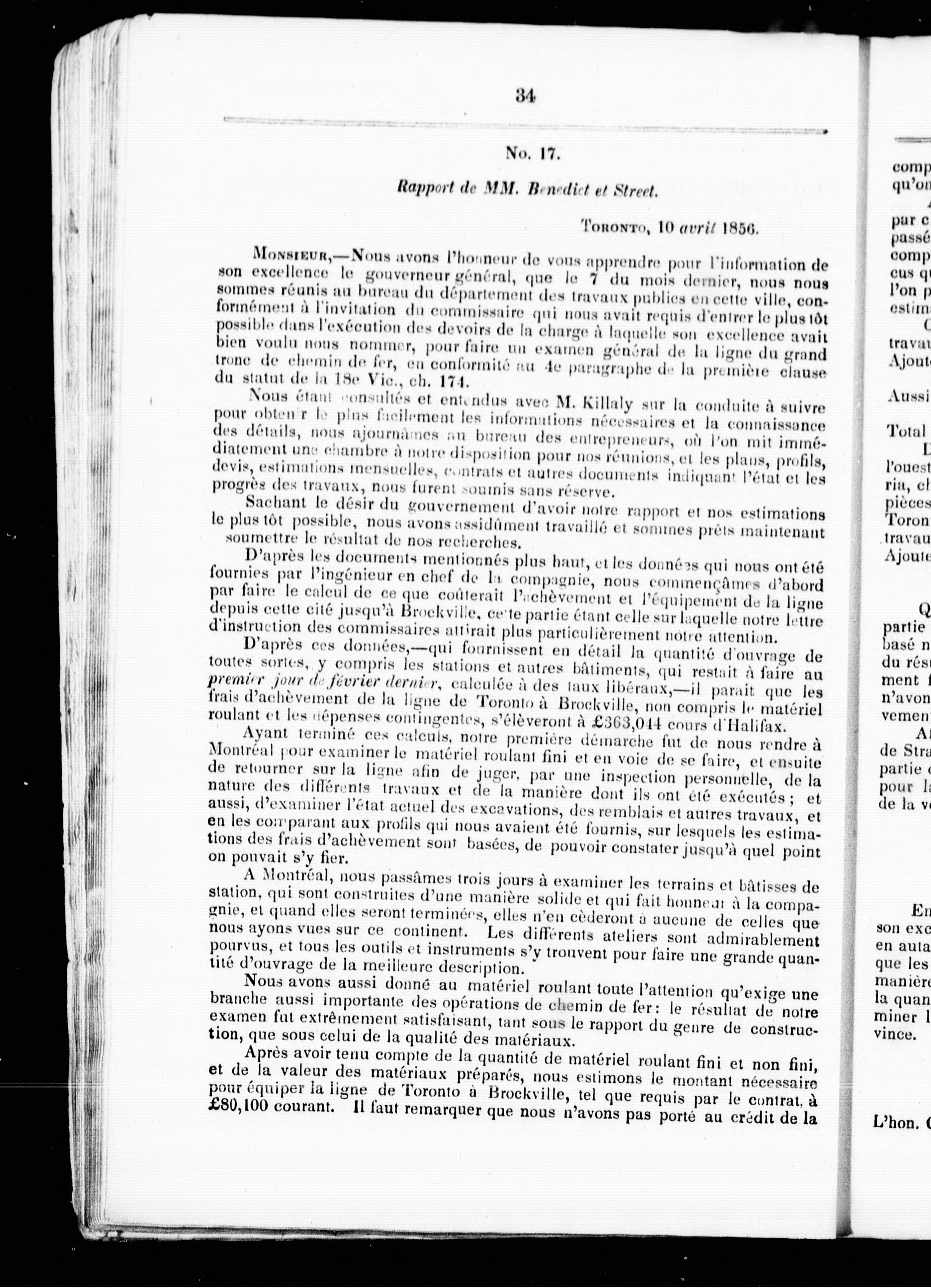 "Soumis à l'Assemblée législative, jeudi, le 23 avril, 1857. Par ordre de Son Excellence le Gouverneur-Général, W. Cayley, inspecteur-général."