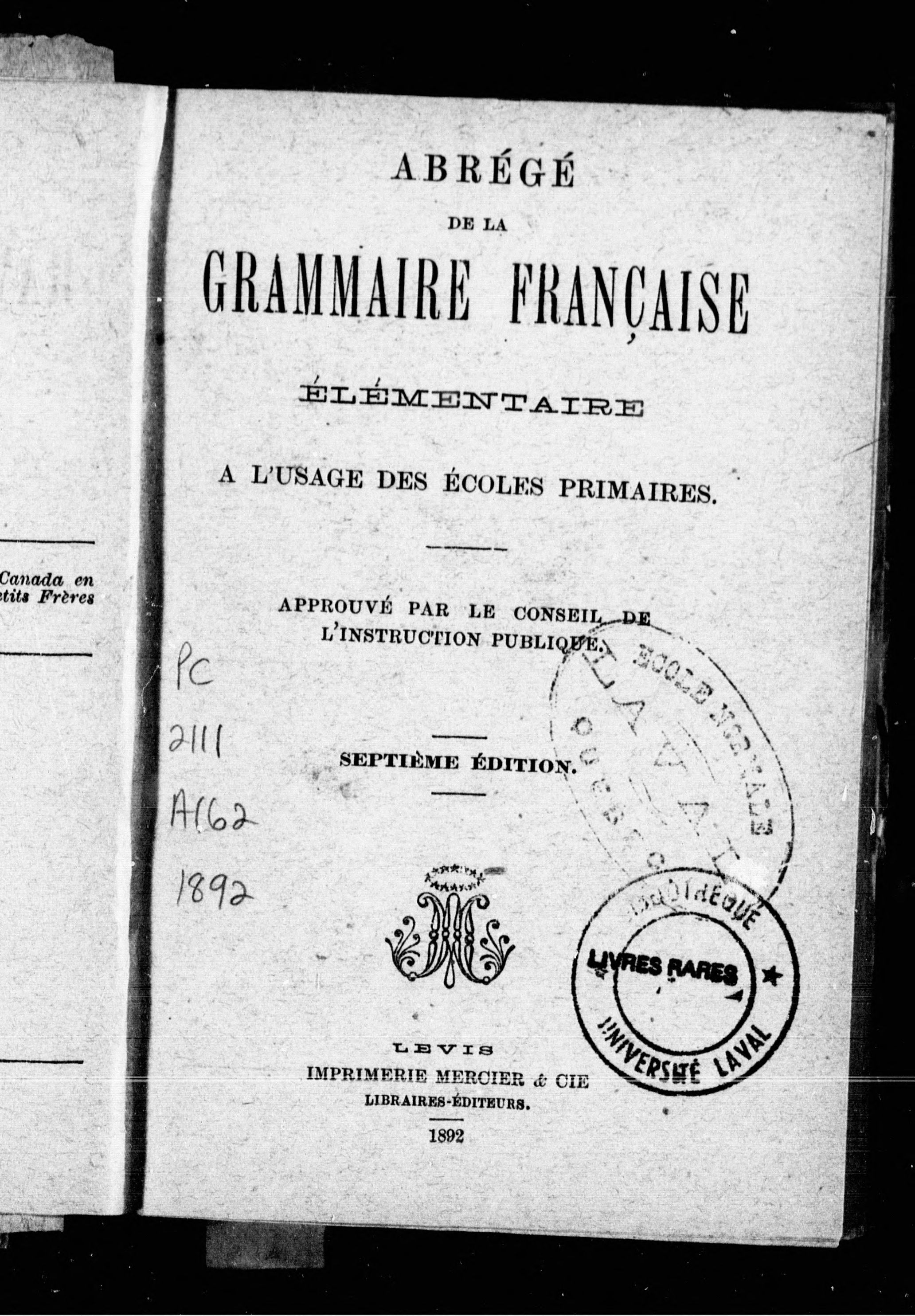 Abrégé de la grammaire française élémentaire : à l'usage des écoles primaires.