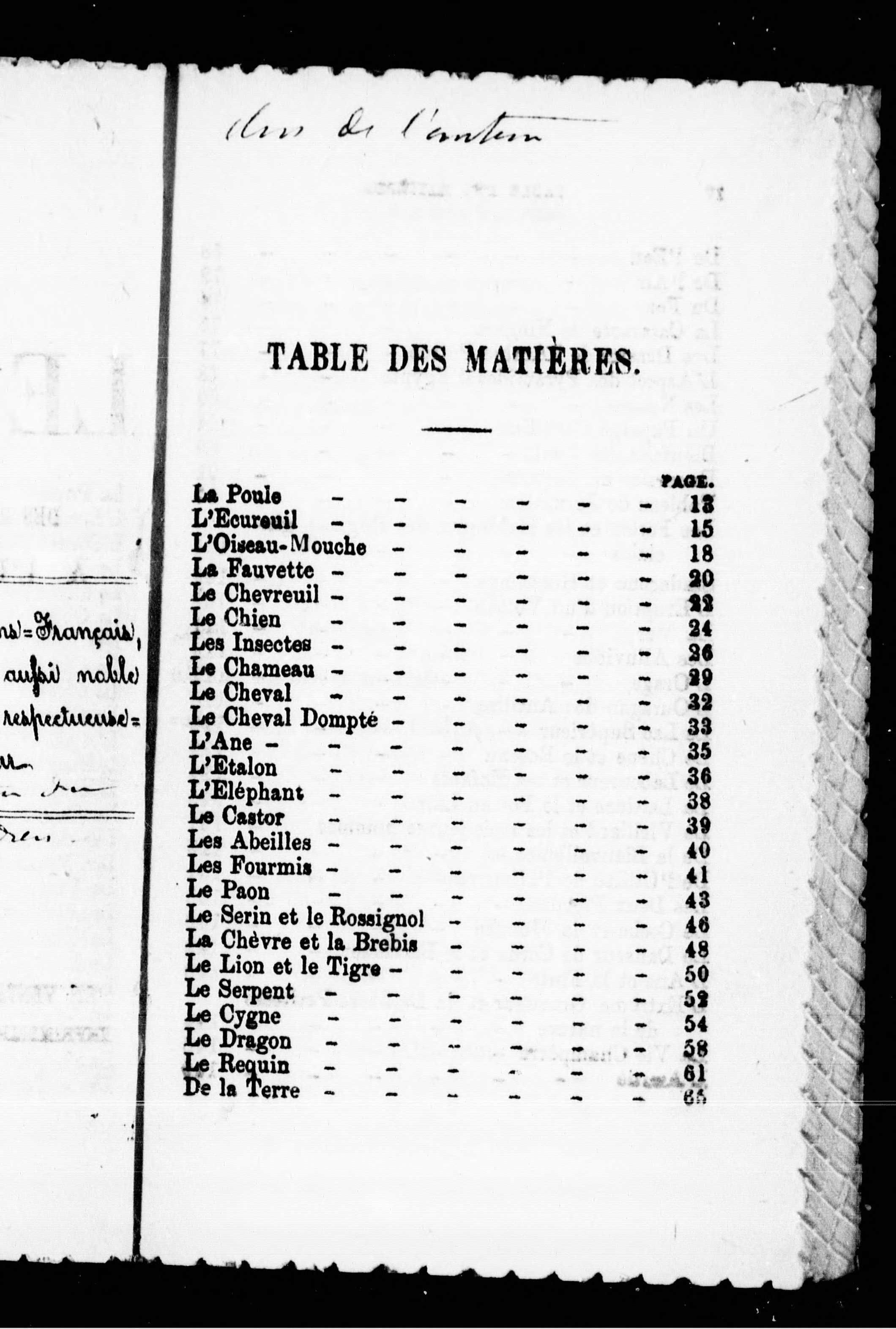 L'auteur [M. Cyr] fait don de cet ouvrage au Pierre-Joseph-Livier Chauveau en 1856. Au verso de la page-titre, il y a une dédicace manuscrite de l'auteur: "M. Cyr rédacteur du Semeur Canadien."