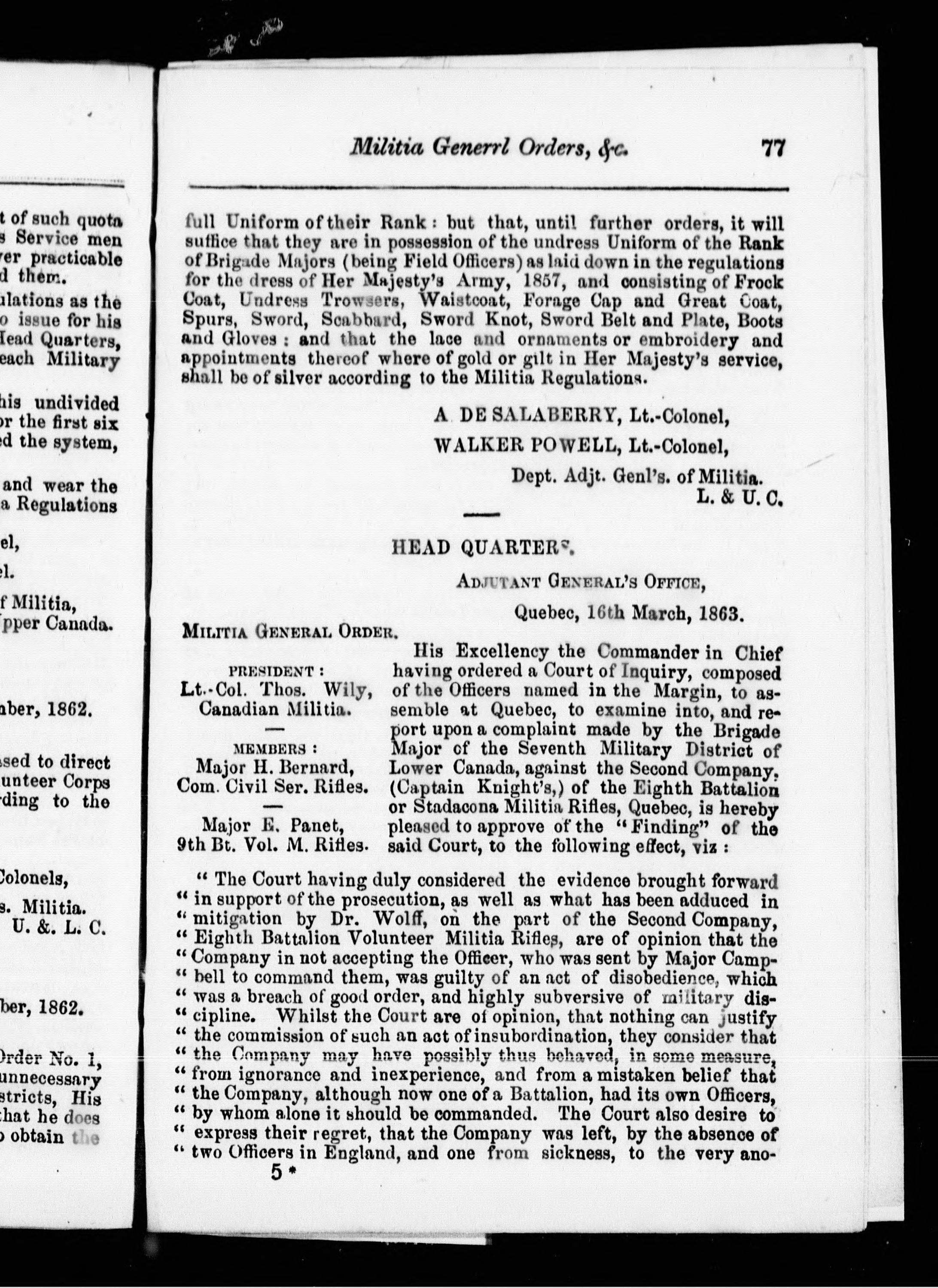 - The Active or volunteer militia force list of Canada -30th April, 1863.