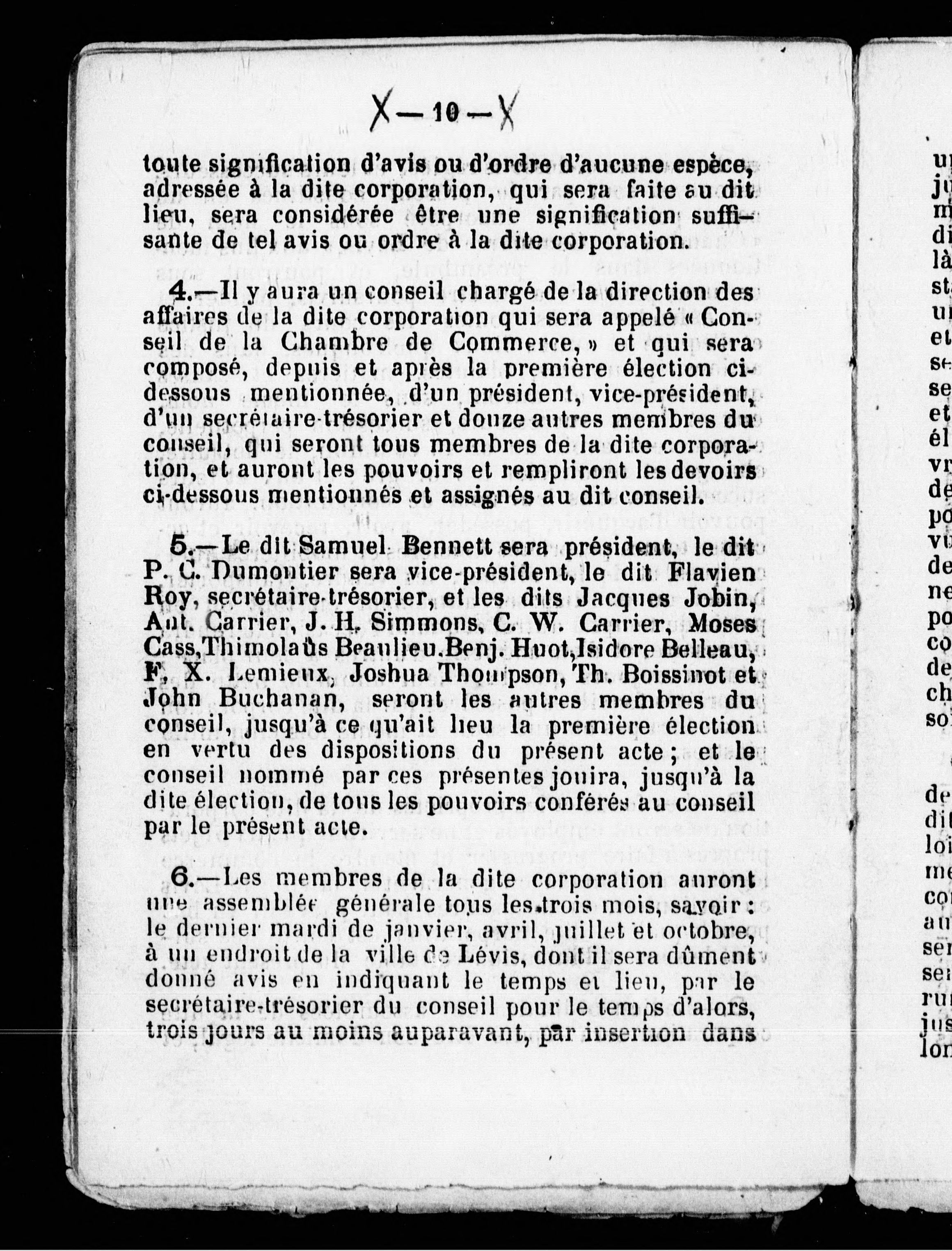Chartre [sic] et règlements de la Chambre de Commerce de la ville de Lévis.