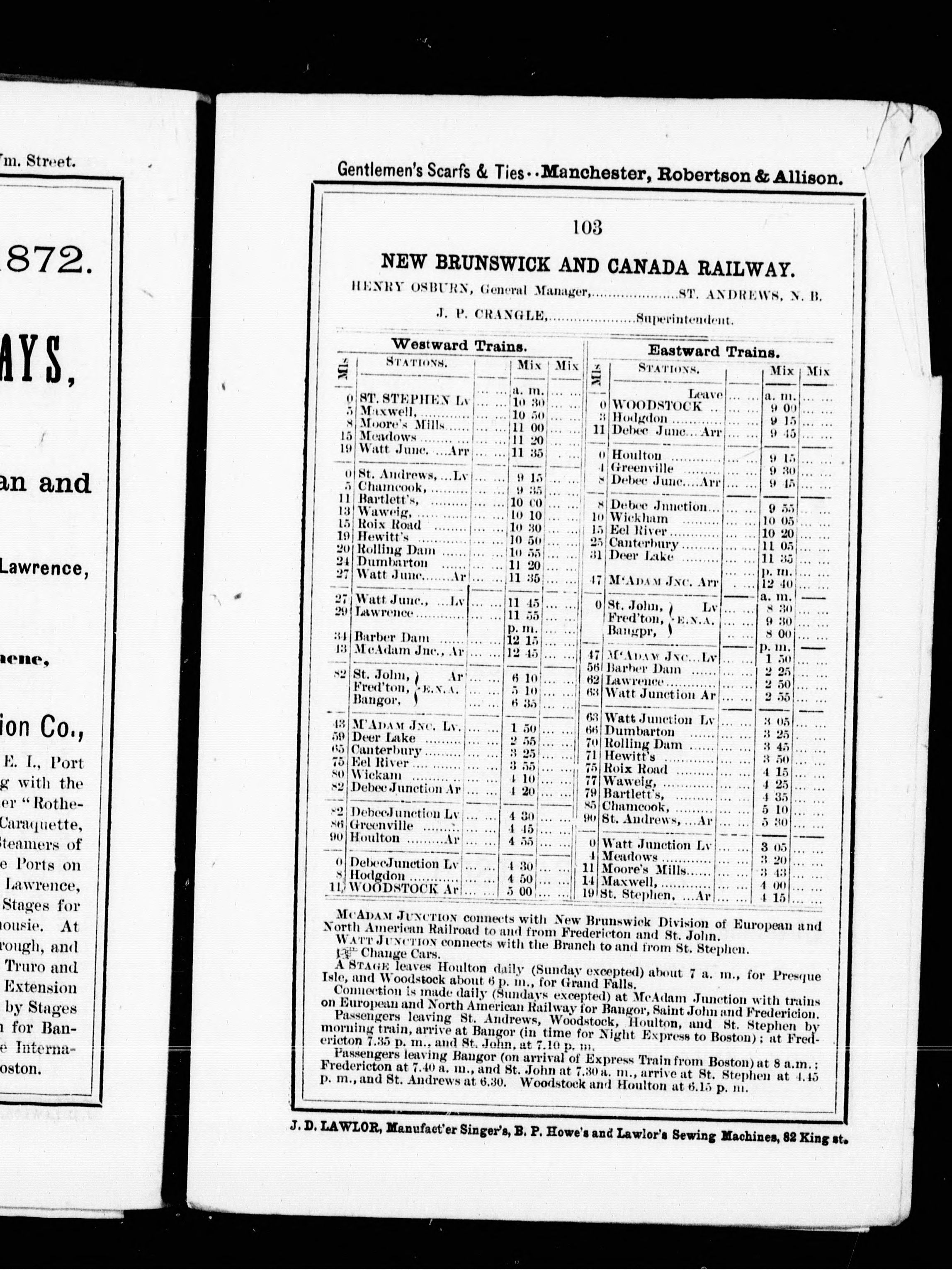 [Saint John, N.B., N.B.? : publisher not identified], 1872.