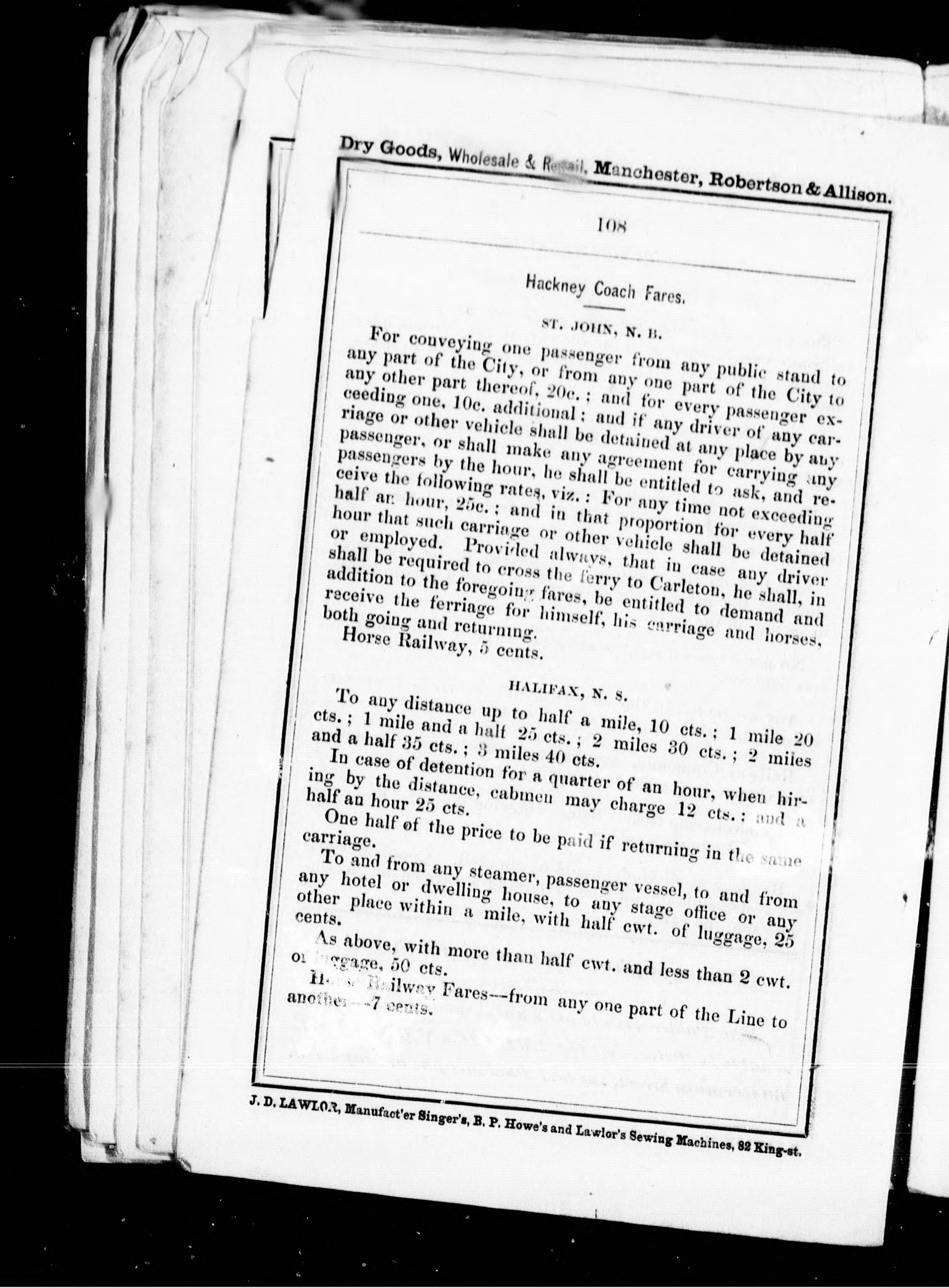 [Saint John, N.B., N.B.? : publisher not identified], 1872.