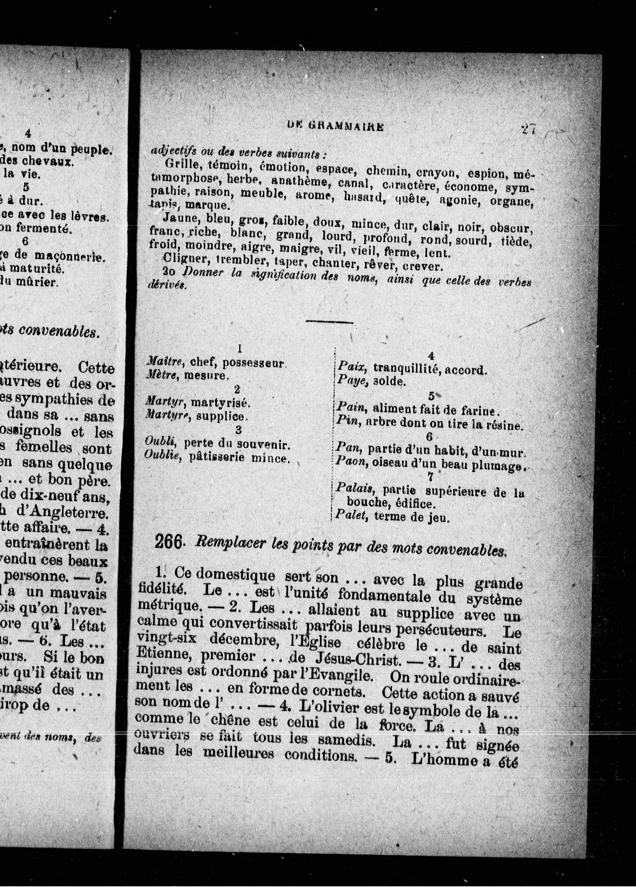 Titre de 1ère partie: Exercices d'orthographe en rapport avec la grammaire élémentaire