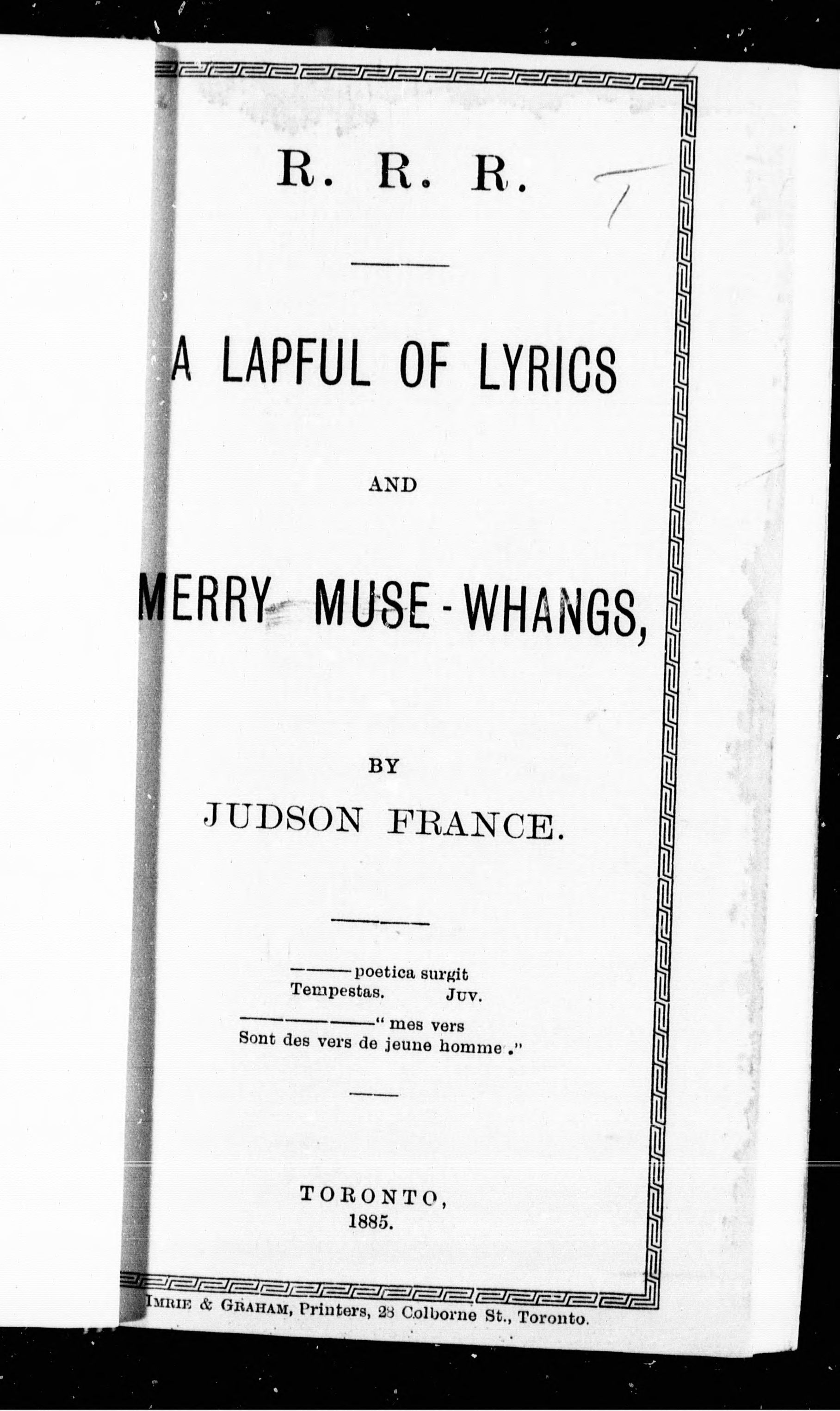 - Toronto : [publisher not identified], 1885.