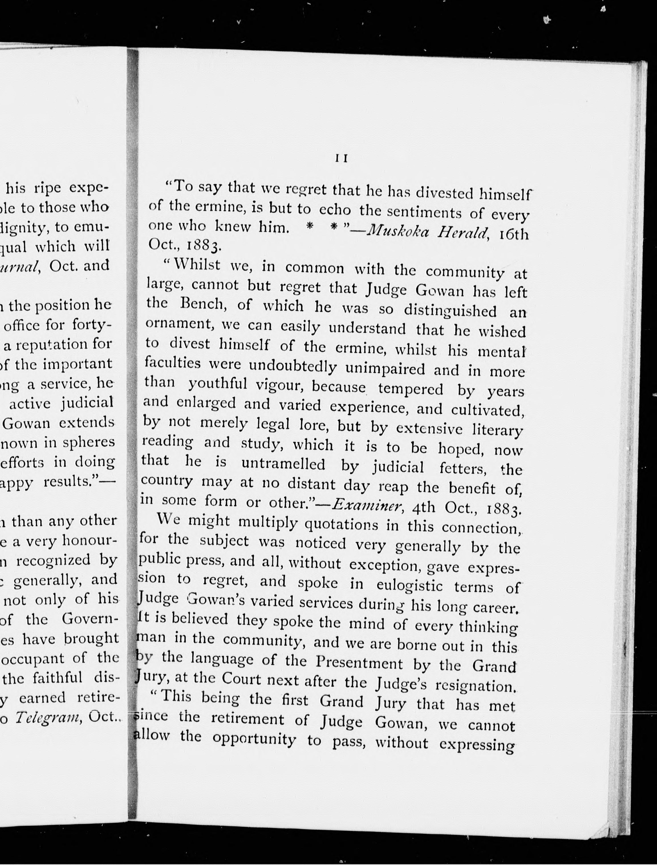 - Public addresses presented to the Hon. J.R. Gowan : with gleanings from the press touching his career