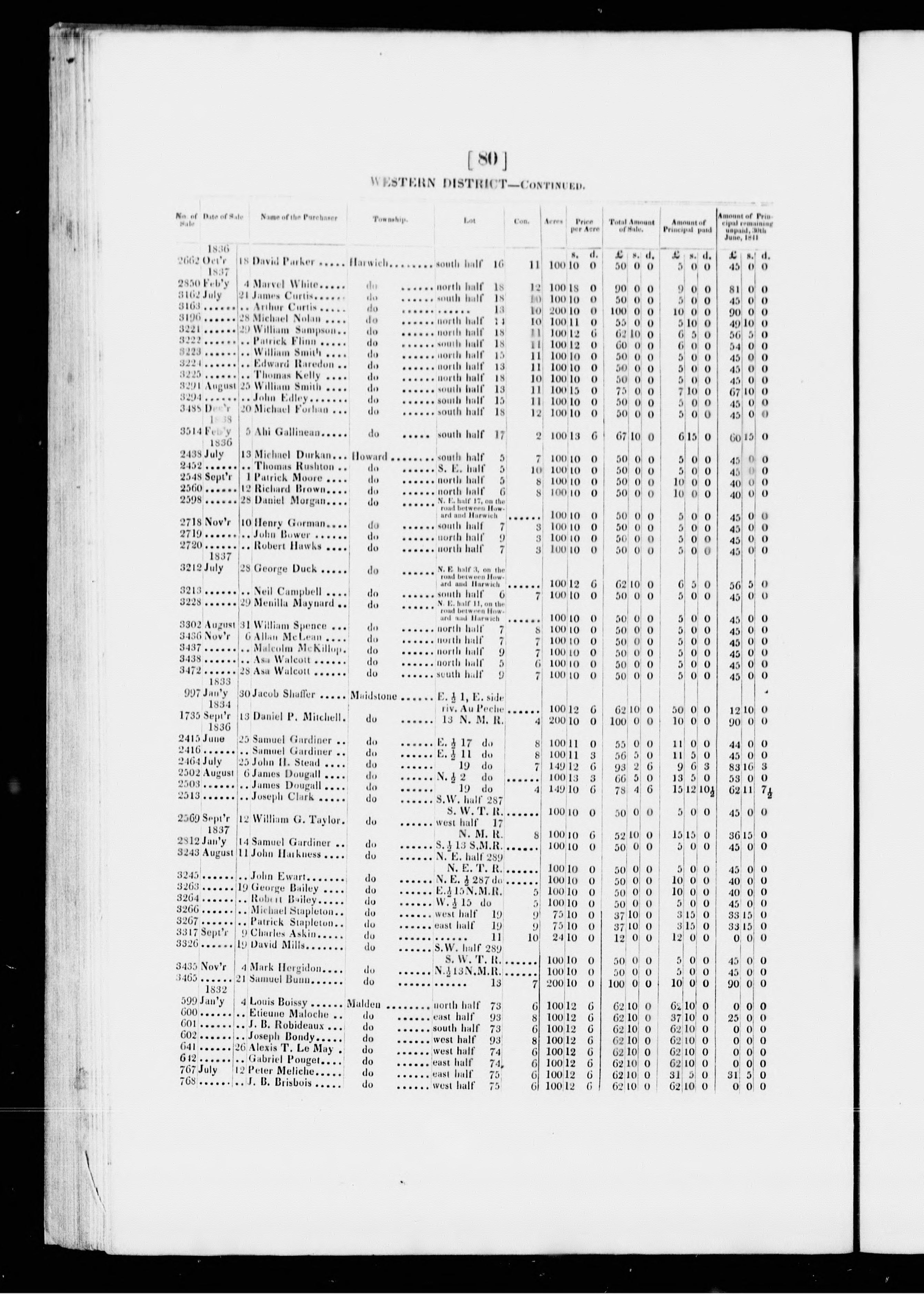 Statement of clergy reserves sold, and of the amount paid on each lot, in the several districts, in that part of this province formerly constituting the province of Upper Canada, as they appear upon the books of the Land Department of the Province of Canada, 30th June, 1841.