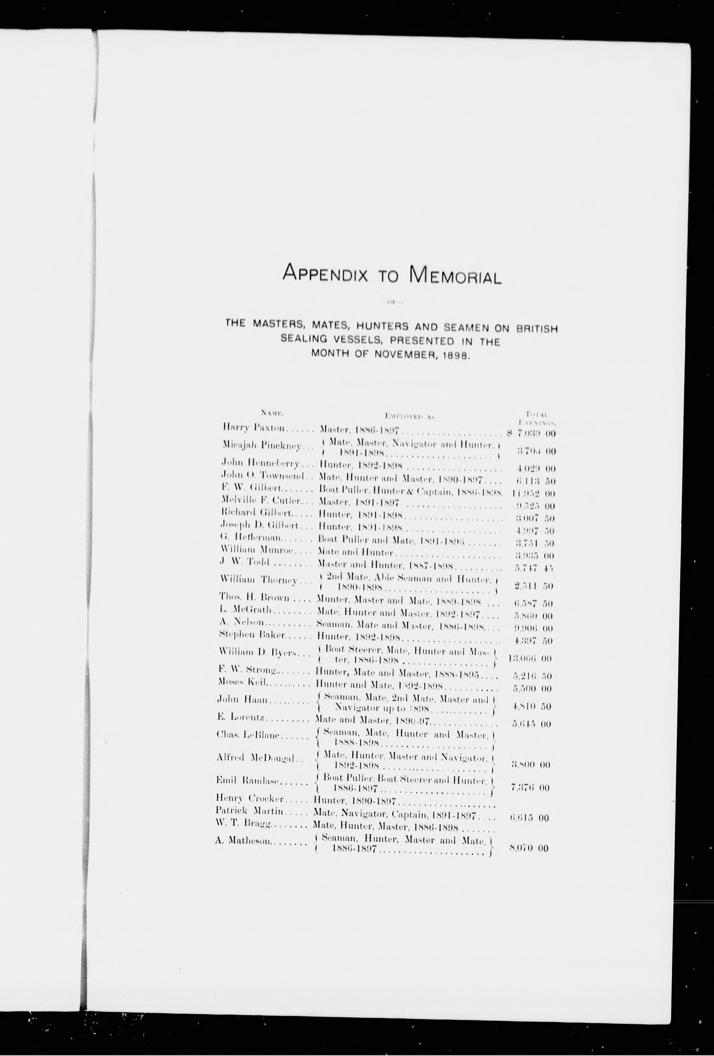 Appendix to memorial of the masters, mates, hunters, and seamen on British sealing vessels, presented in the month of November, 1898--leaf [3]