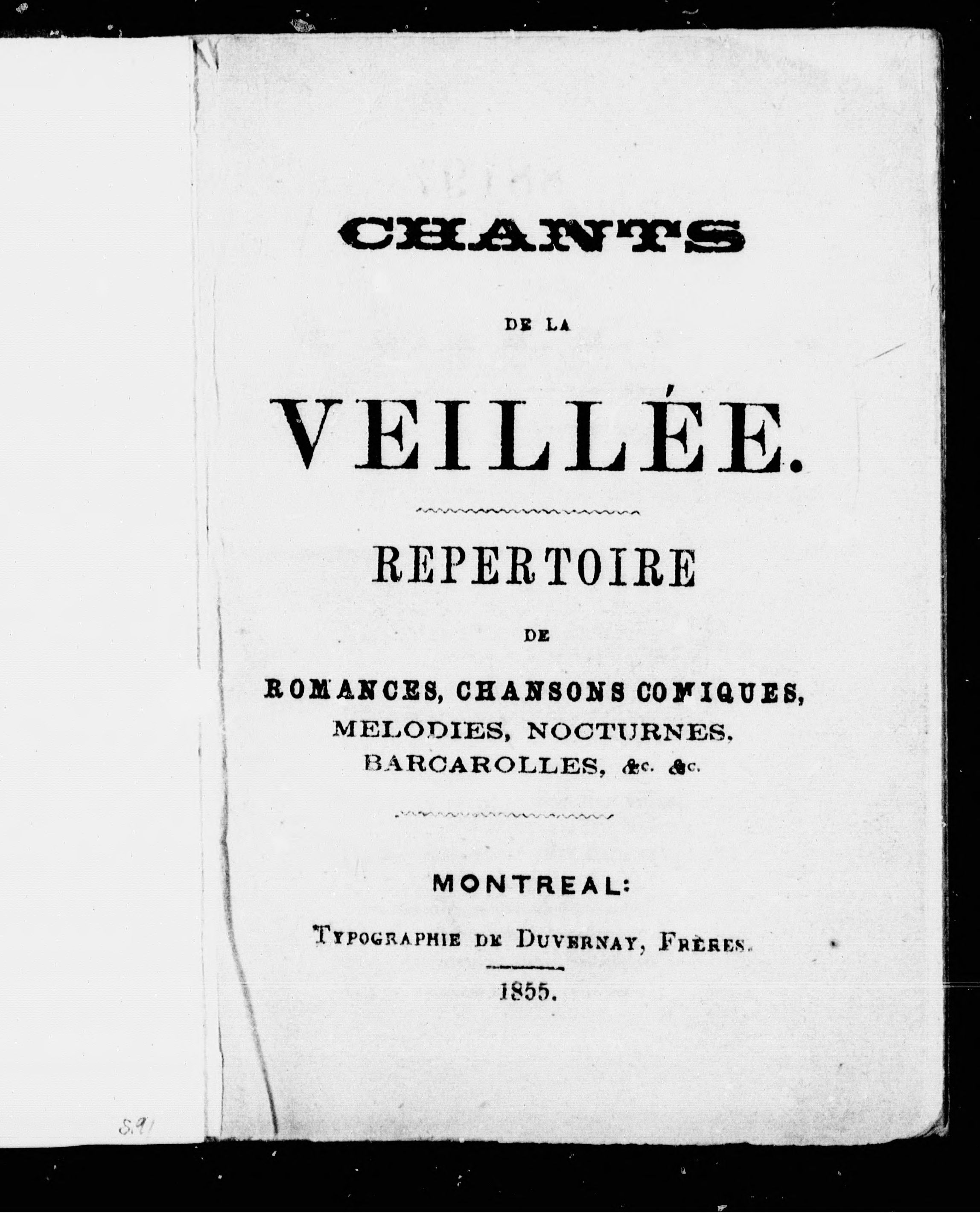 - Chants de la veillée : répertoire de romances, chansons comiques, mélodies, nocturnes, barcarolles &c. &c.