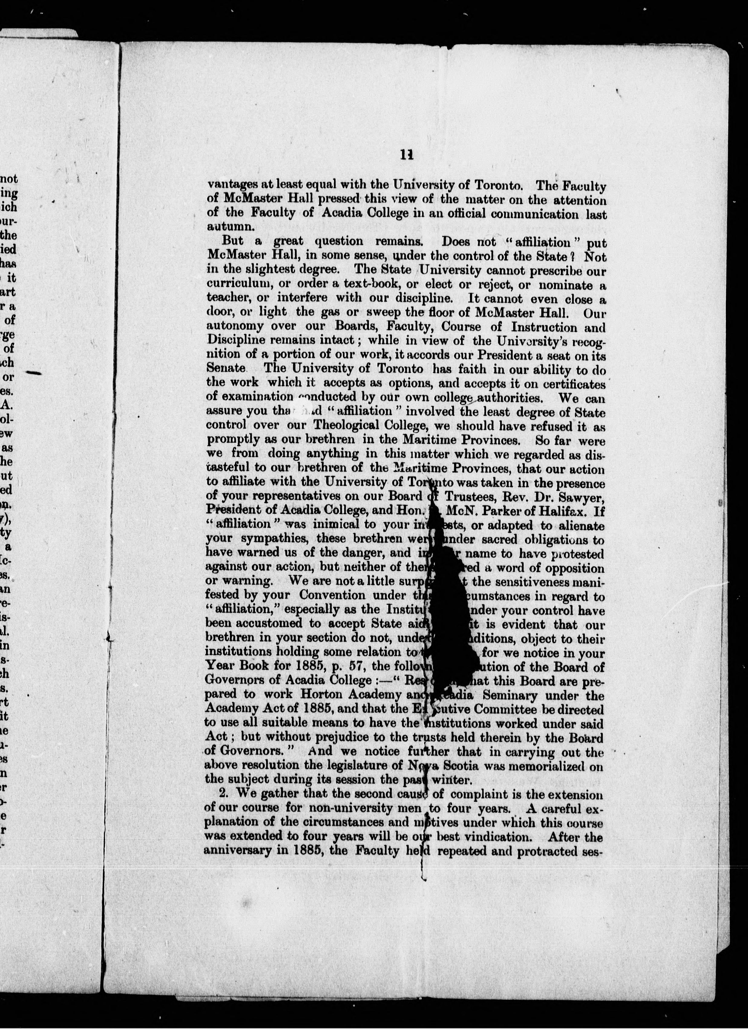 Correspondence between a committee of the Maritime Baptist Convention and the authorities of Toronto Baptist College.