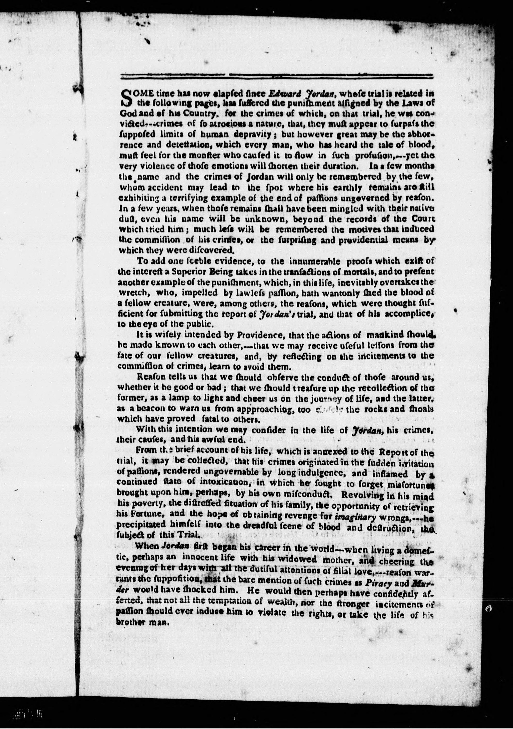 Report of the trial of Edward Jordan, and Margaret Jordan his wife, for piracy & murder, at Halifax on the 15th day of November, 1809, together with Edward Jordan's dying confession : to which is added the trial of John Kelly, for piracy and murder, on the 8th day of December, 1809