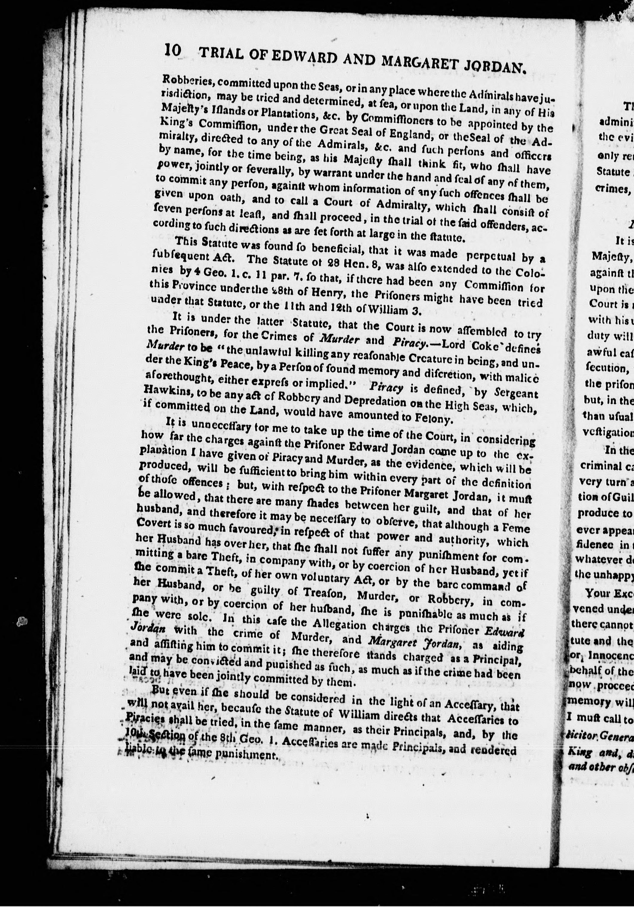 Report of the trial of Edward Jordan, and Margaret Jordan his wife, for piracy & murder, at Halifax on the 15th day of November, 1809, together with Edward Jordan's dying confession :