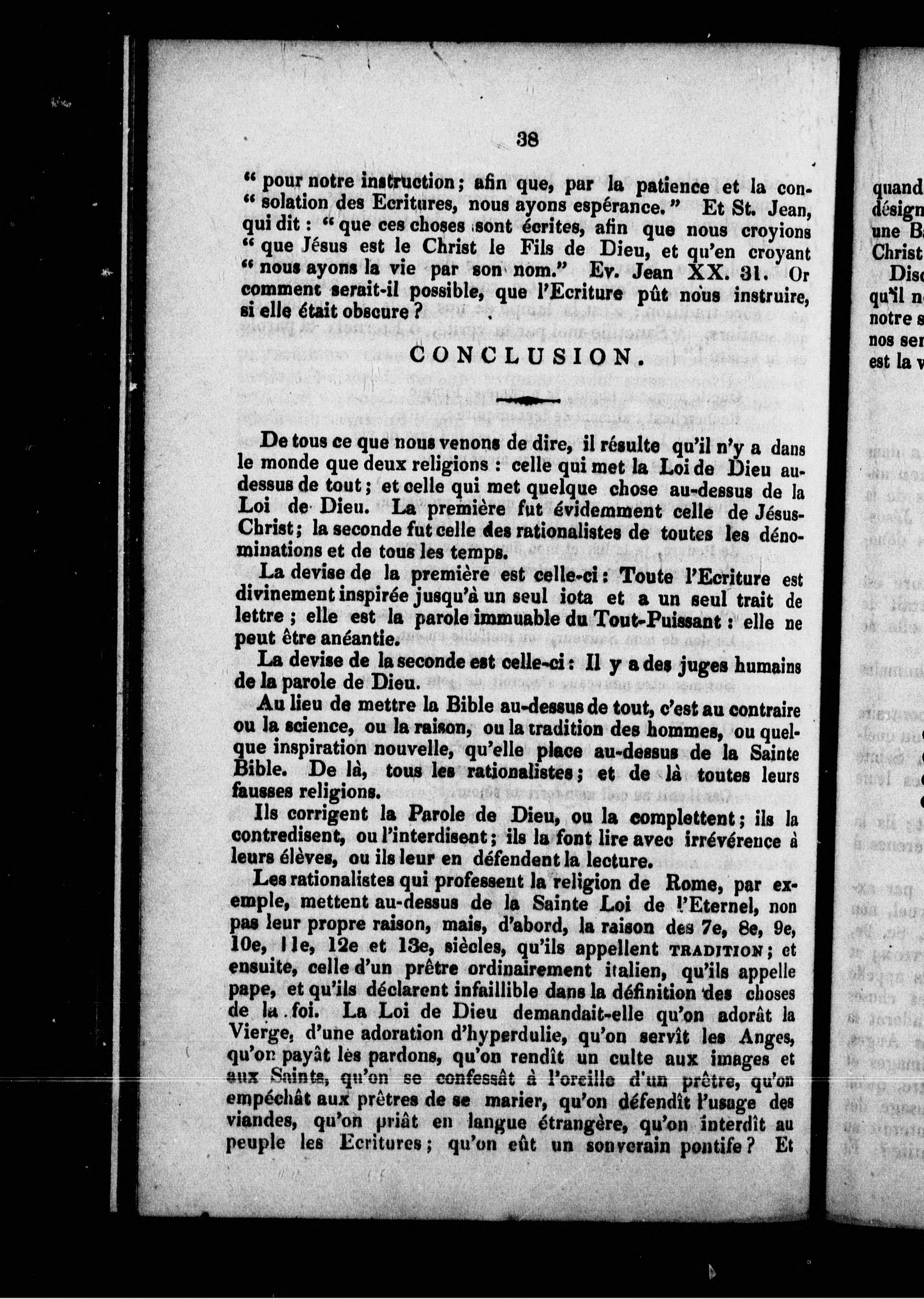 - La souveraine autorité des saintes écritures : en réponse à la publication du revd. P.M.M. insérée dans le Canadien et le Journal de Québec du 24 juin au 1 juillet de cette année, contre la loi de Dieu comme juge et règle souveraine de la foi et des moeurs des chrétiens