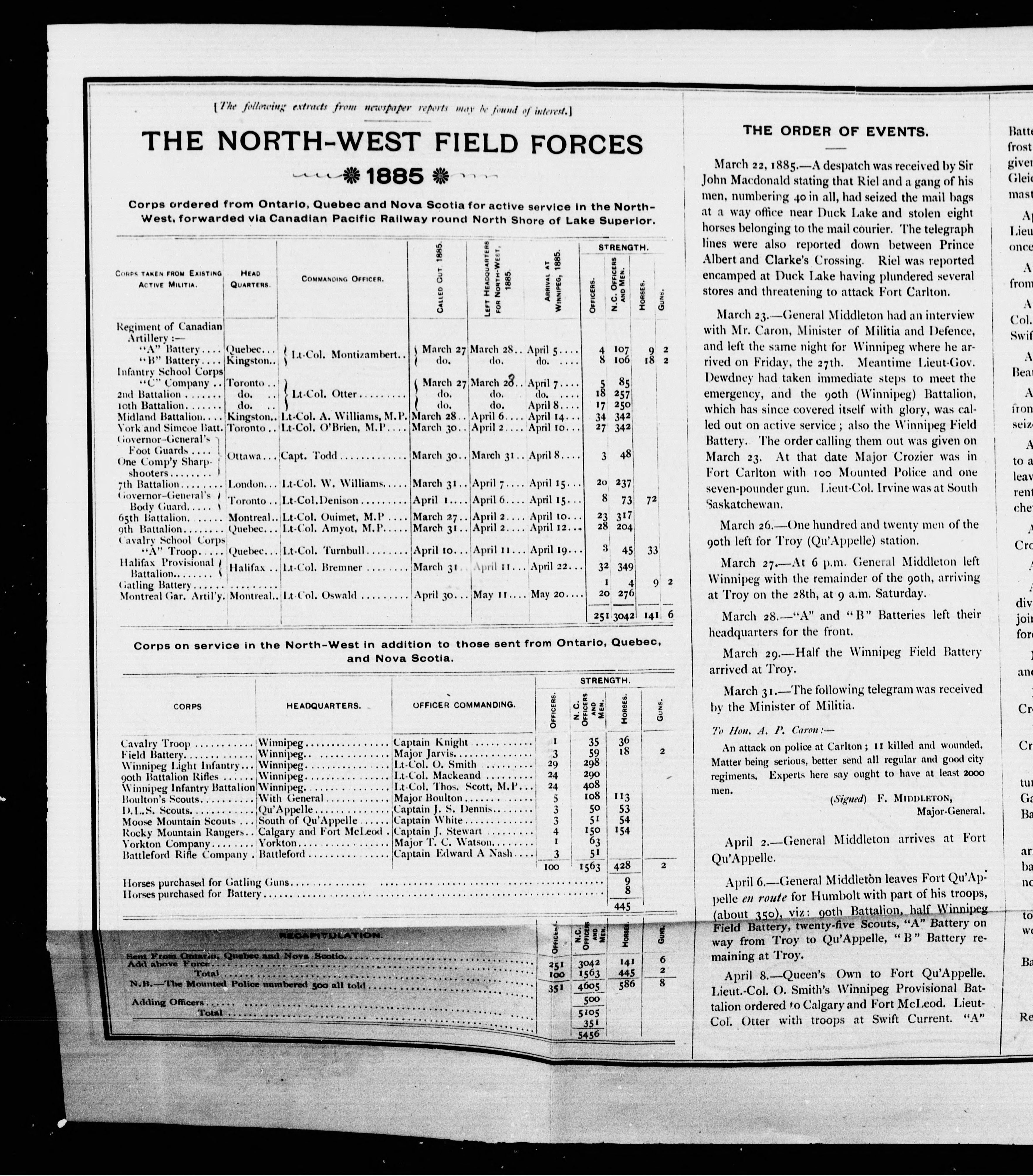 Report upon the suppression of the rebellion in the North-West Territories, and matters in connection therewith, in 1885