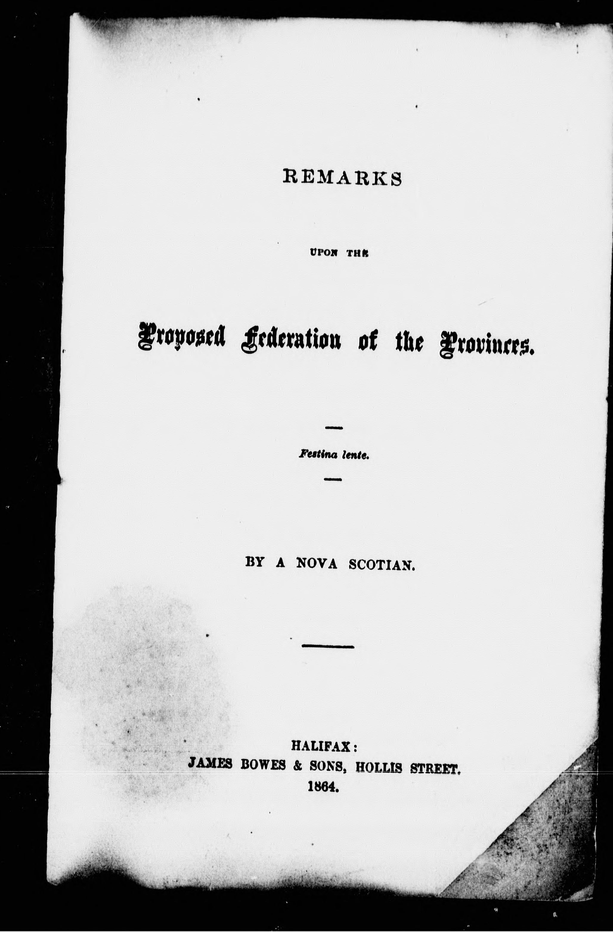 Halifax [N.S.] : J. Bowes and Sons, 1864.; 23 images, 22 with full-text search