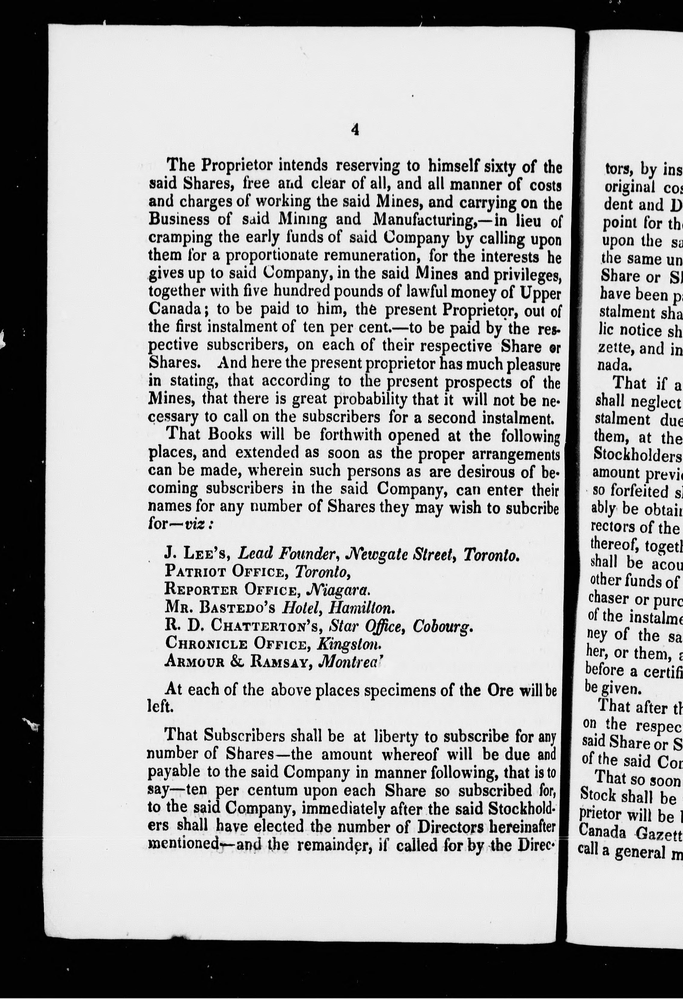 A prospectus of the British & Canadian Mining and Manufacturing Company : situated in the townships of Gainsborough and Clinton, in the District of Niagara, Upper Canada. - Adresse bibliographique