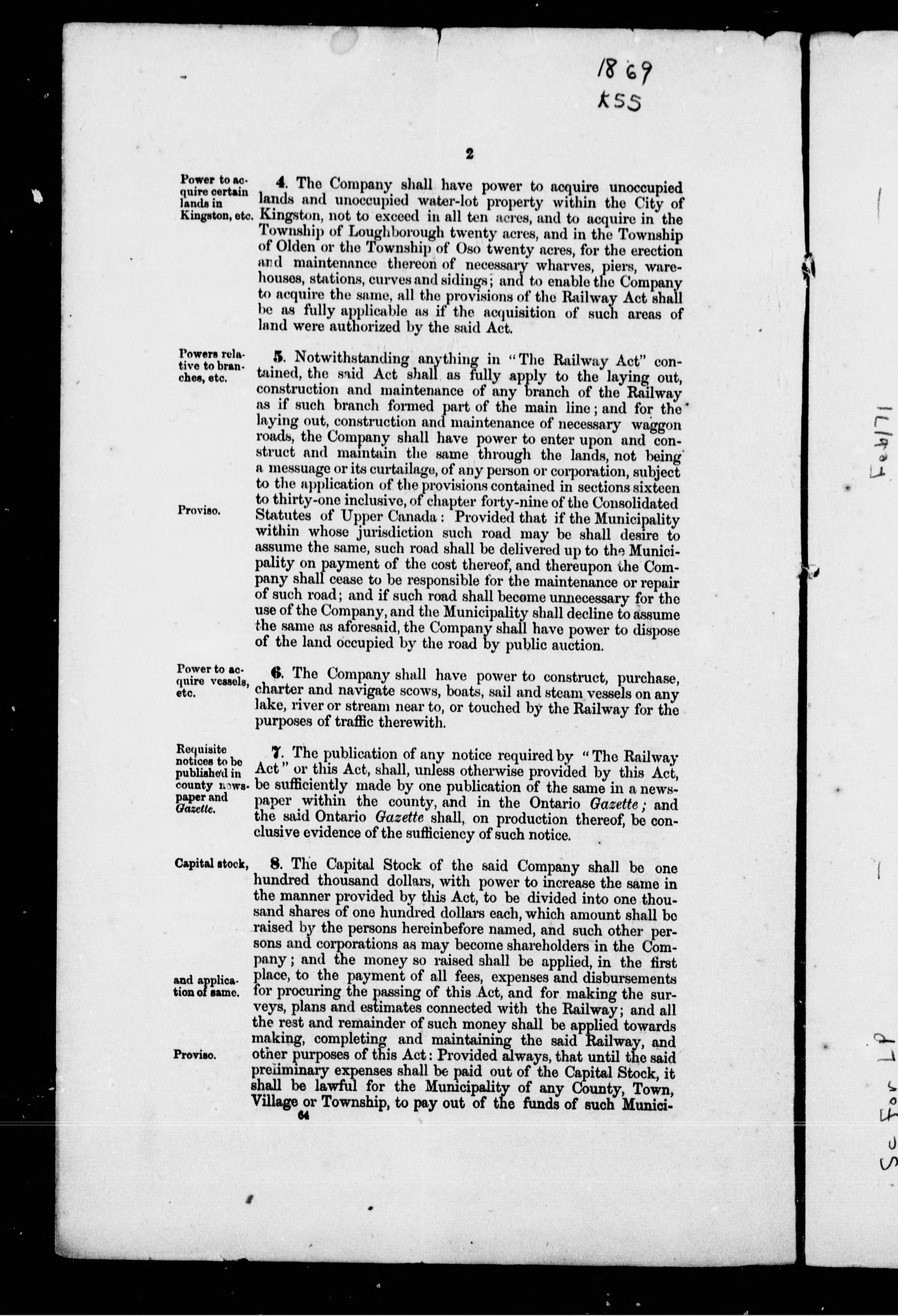 An act to incorporate the Kingston and Frontenac Railway Company.