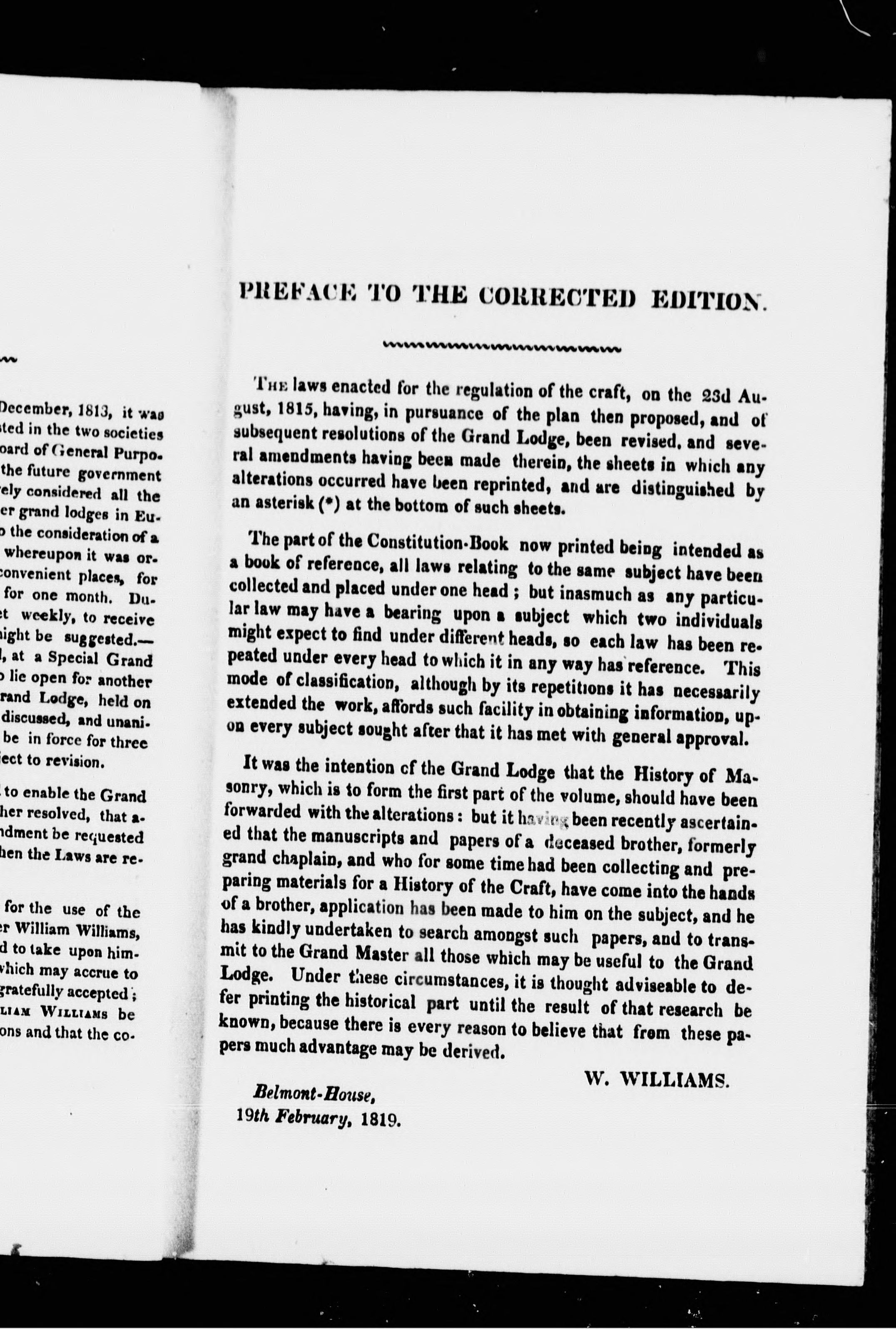 "Published, by the authority of the United Grand Lodge, by William Williams, Esq., provincial Grand Master for the county of Dorset ... republished by the order of the provincial Grand Lodge of Upper Canada."