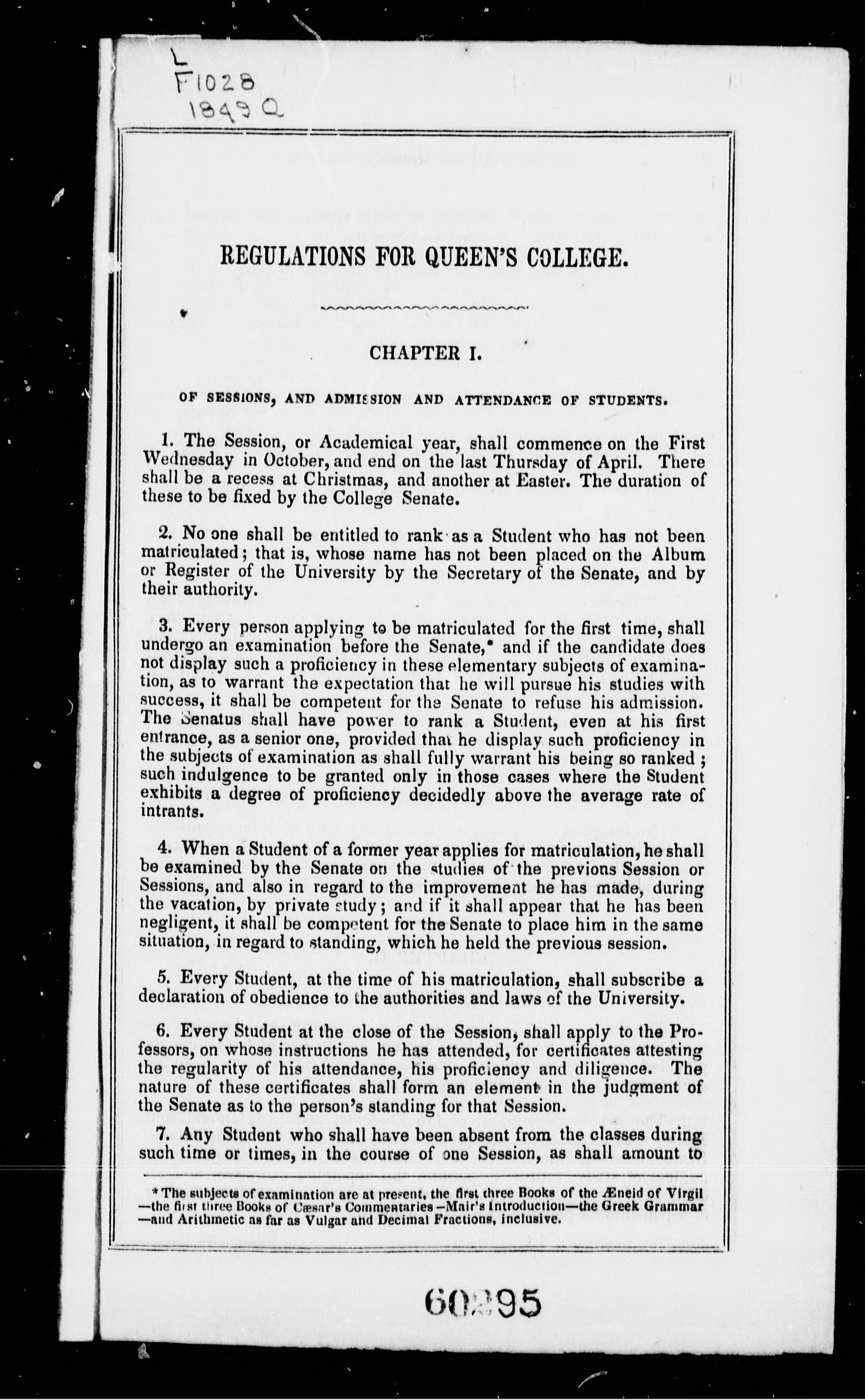 Regulations for Queen's College.
