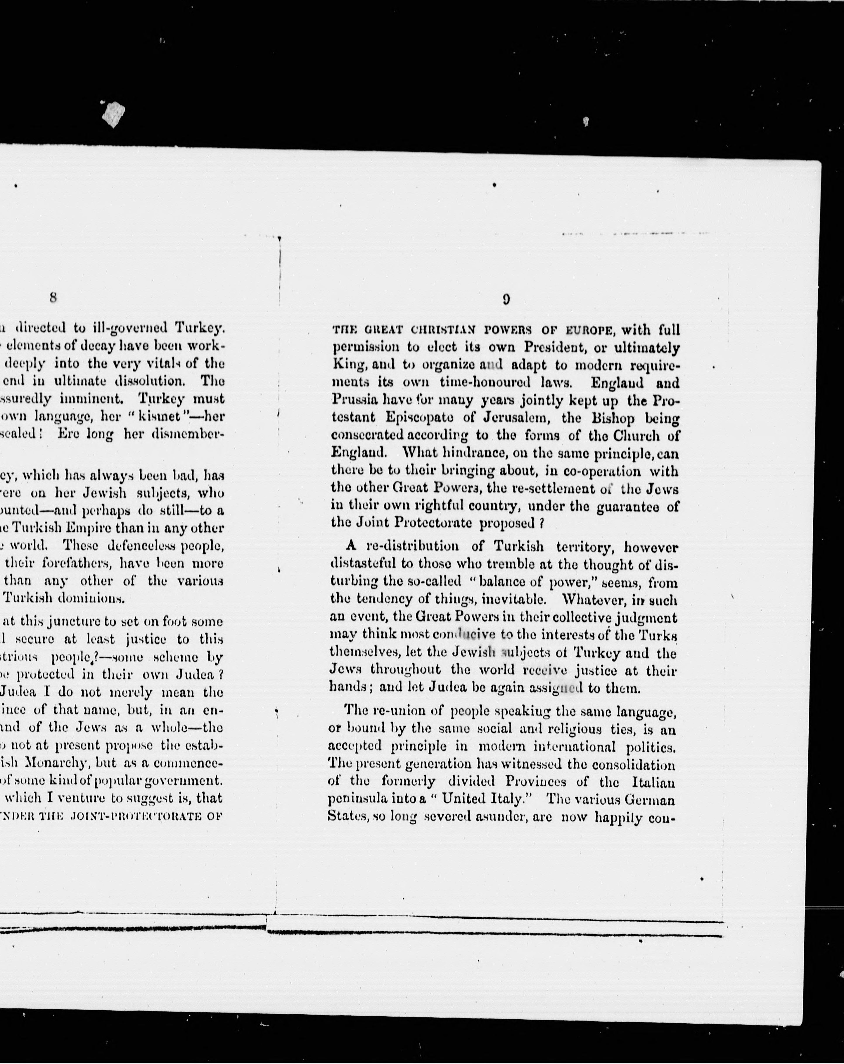 - Judæa for the Jews : under a joint-protectorate of the great powers of Europe : to the Right Honourable Benjamin D'Israeli.
