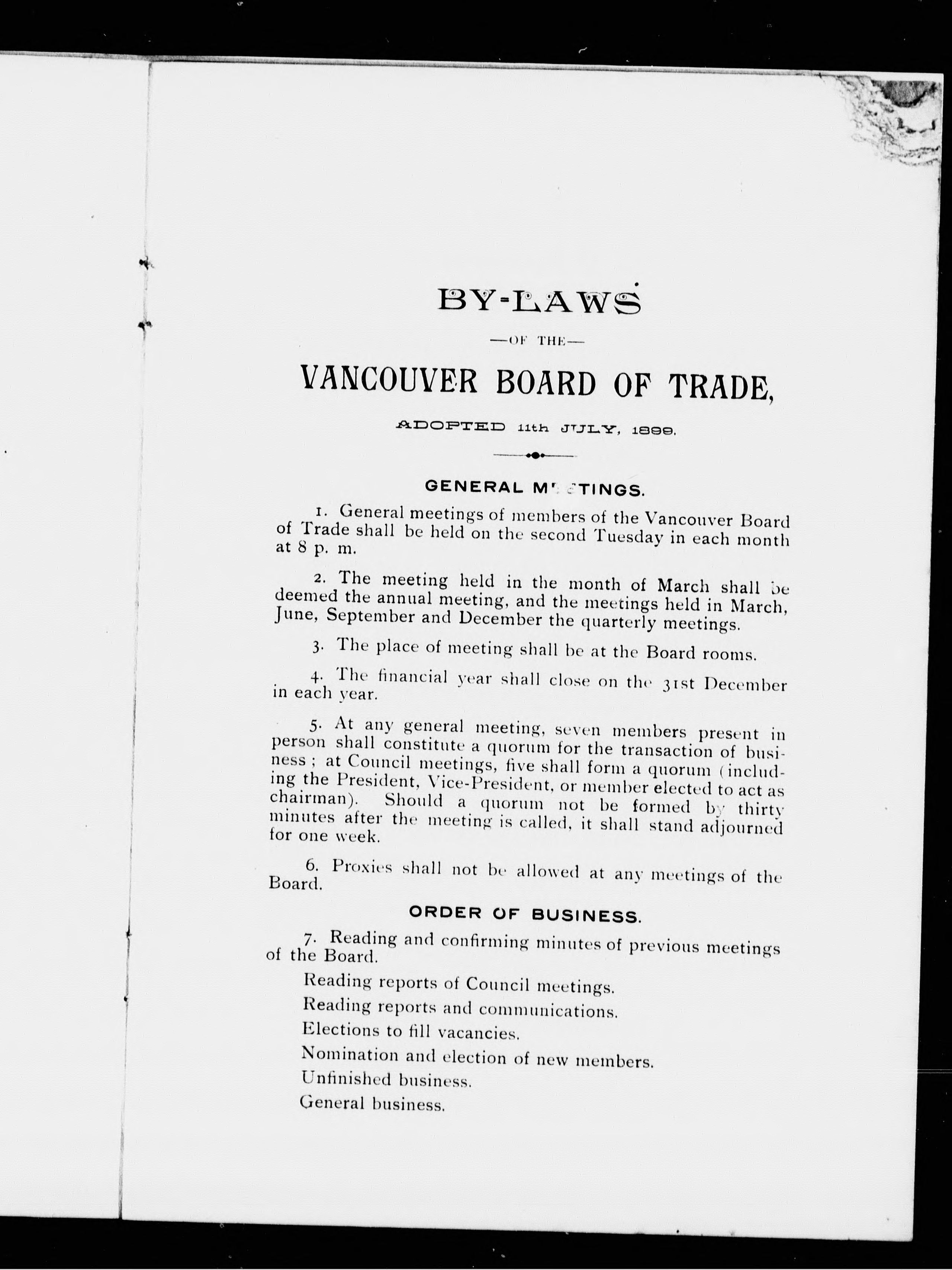 By-laws and act of incorporation of the Vancouver Board of Trade : adopted and confirmed 11th July, 1899.