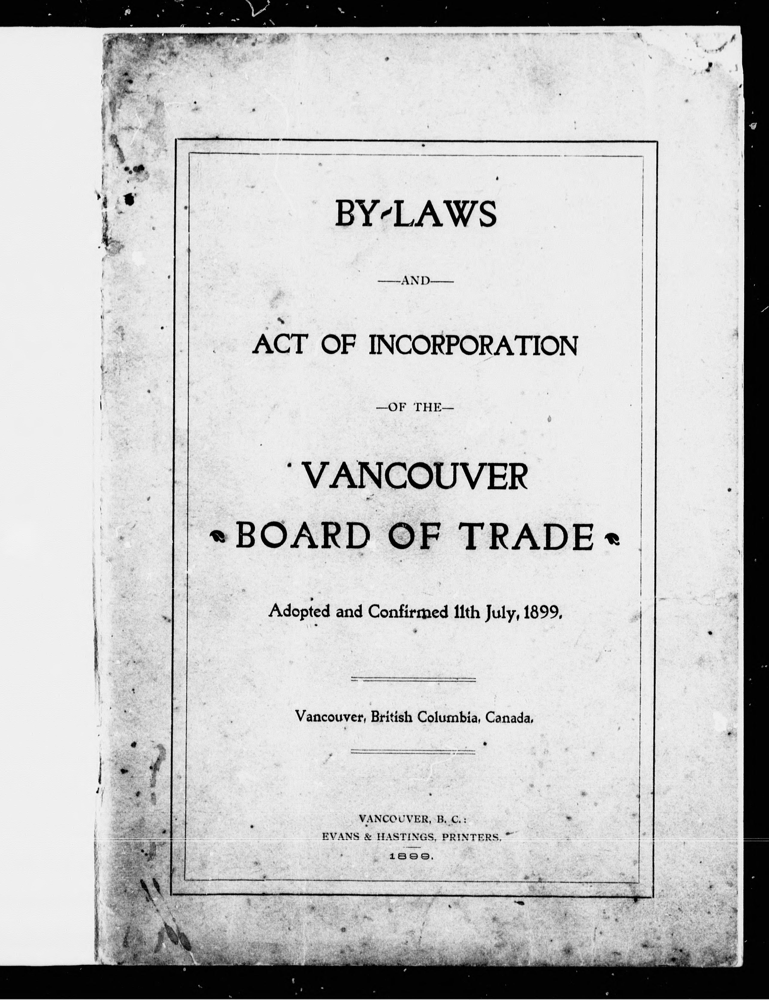 By-laws and act of incorporation of the Vancouver Board of Trade : adopted and confirmed 11th July, 1899.