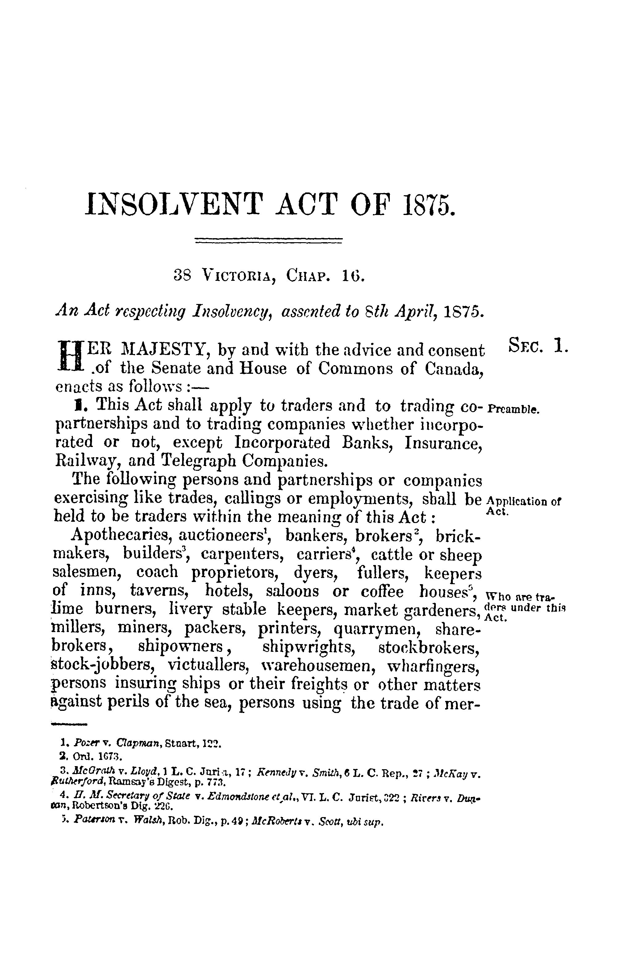 The Insolvent act, 1875 : with the rules of practice and tariffs of fees in force in the different provinces of the Dominion - Adresse bibliographique