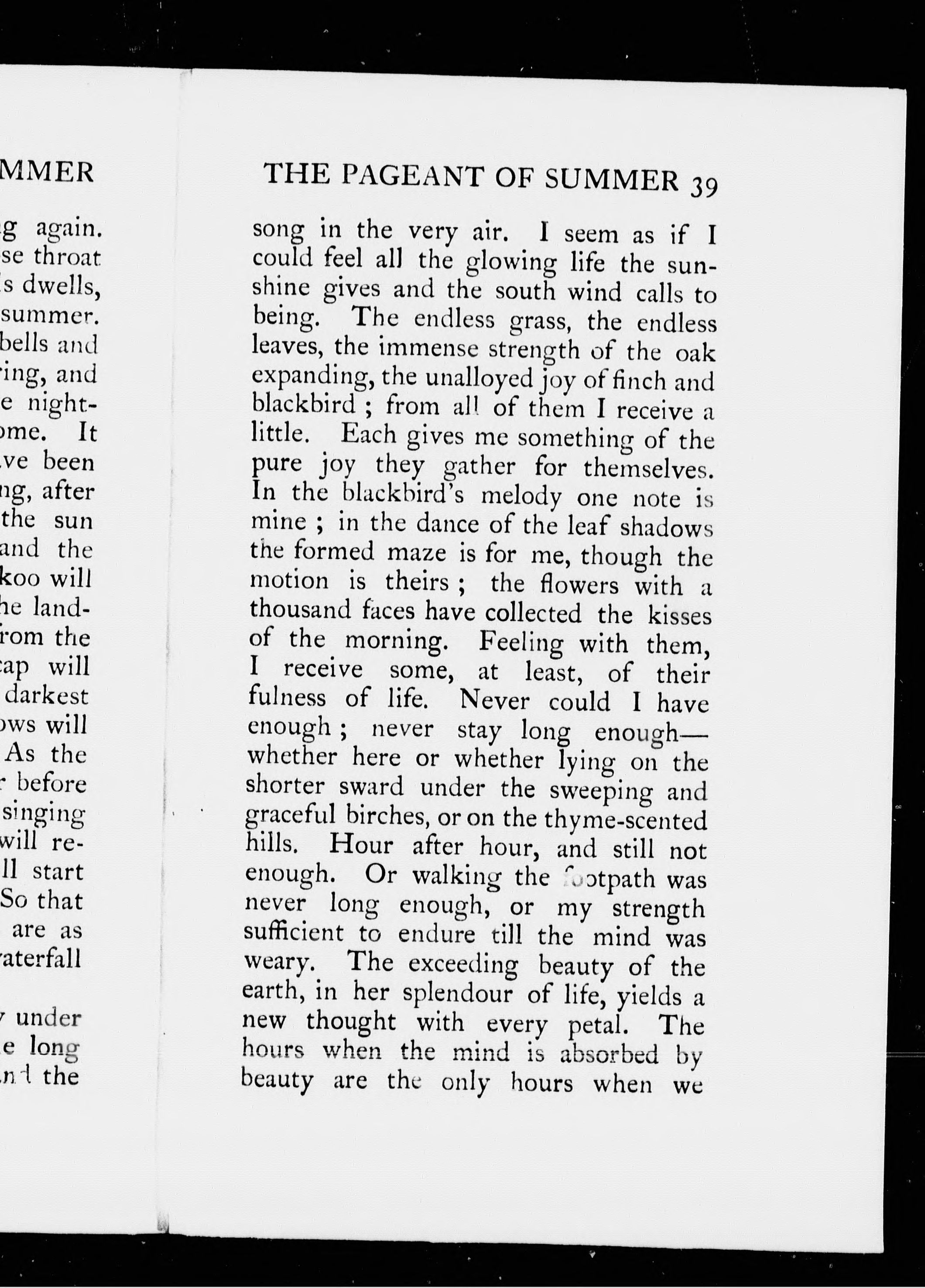 Originally published in Longman's magazine, June, 1883, and reissued in his The life of the fields, London, Chatto and Windus, 1884; first published as a monograph with the present title: Portland, Me., T.B. Mosher, 1896.
