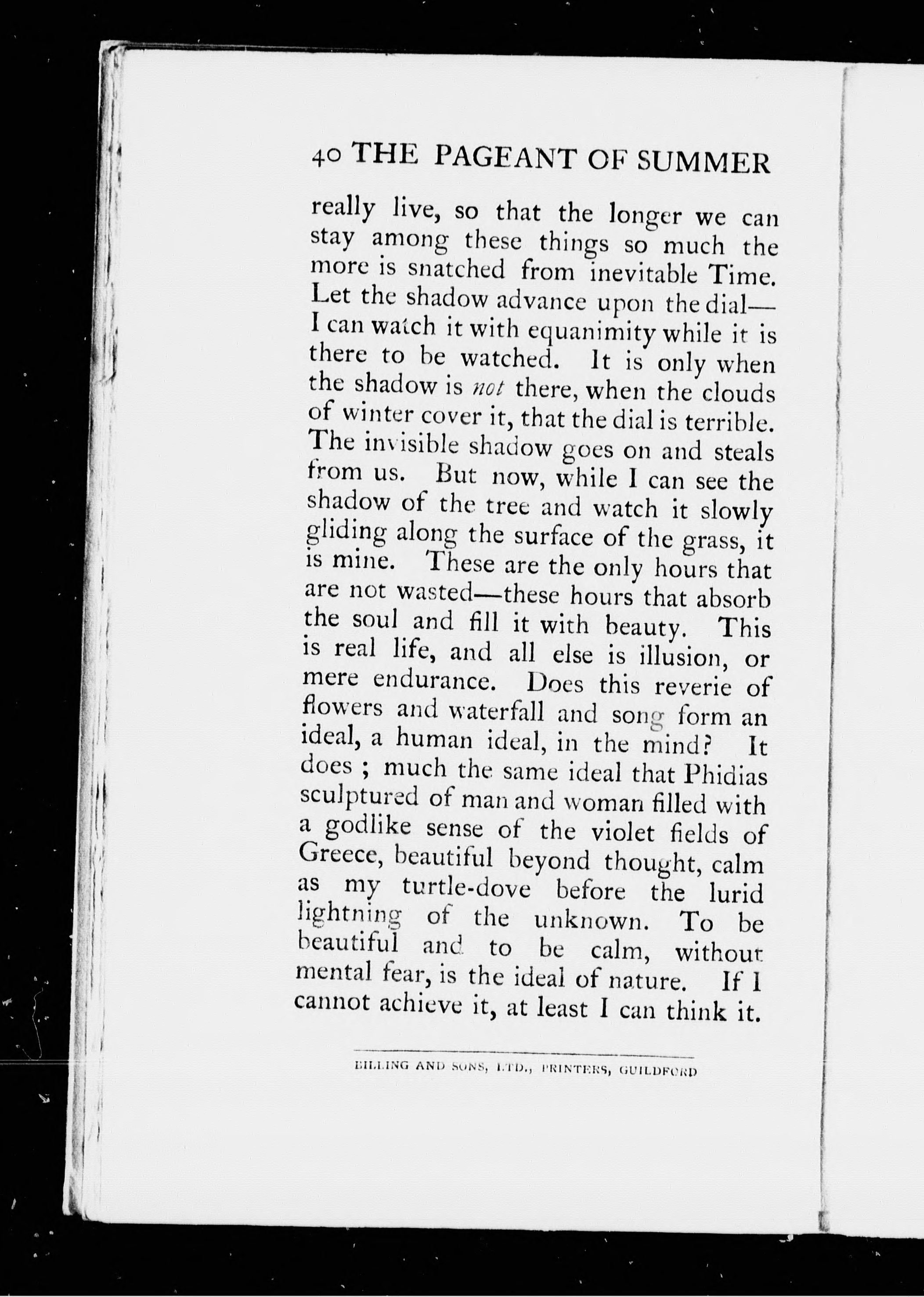 Originally published in Longman's magazine, June, 1883, and reissued in his The life of the fields, London, Chatto and Windus, 1884; first published as a monograph with the present title: Portland, Me., T.B. Mosher, 1896.