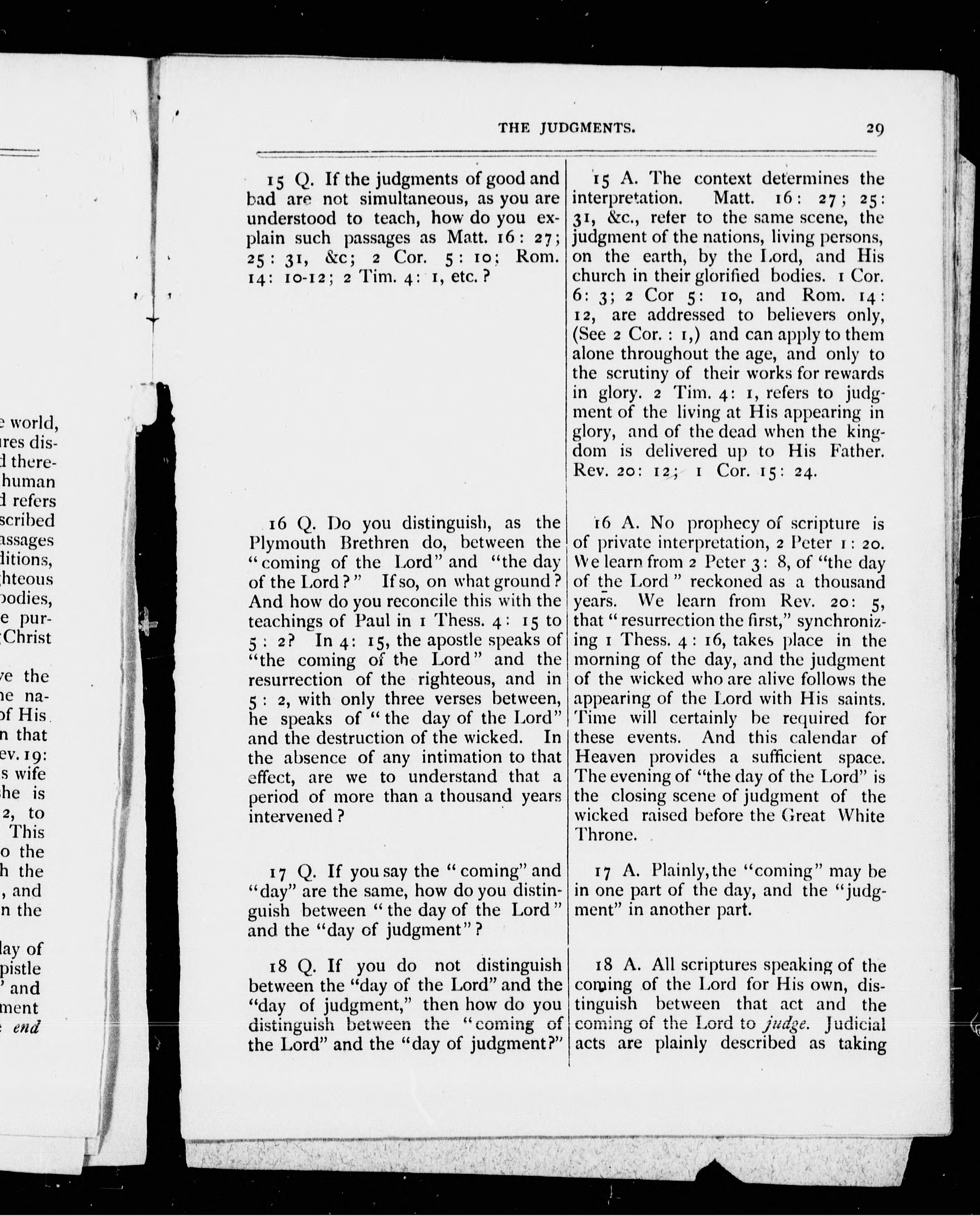 Answers given by H.M. Parsons and John Mutch at a series of meetings held in July 1886 at Parkdale, Ont.--p. [2]