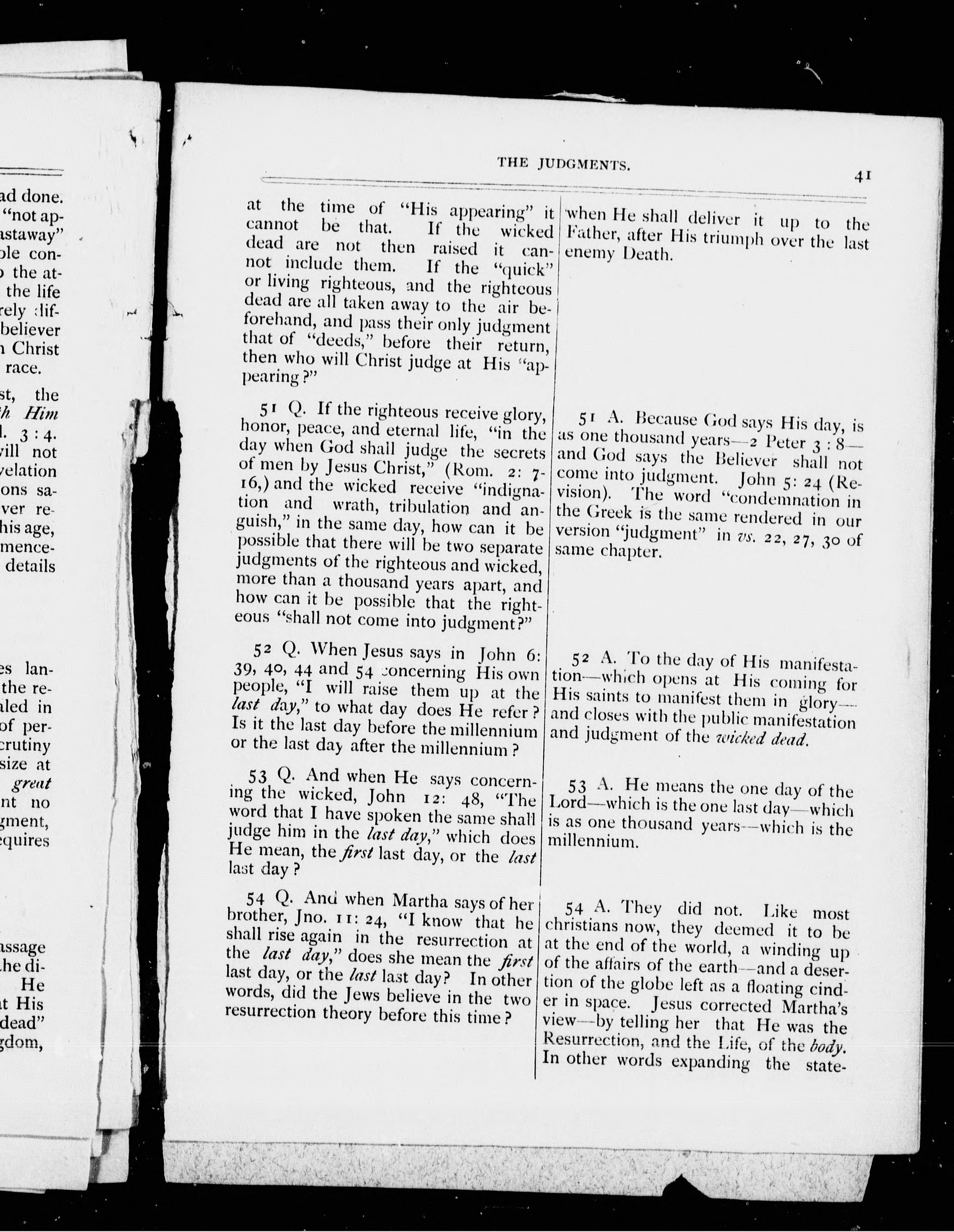 Answers given by H.M. Parsons and John Mutch at a series of meetings held in July 1886 at Parkdale, Ont.--p. [2]