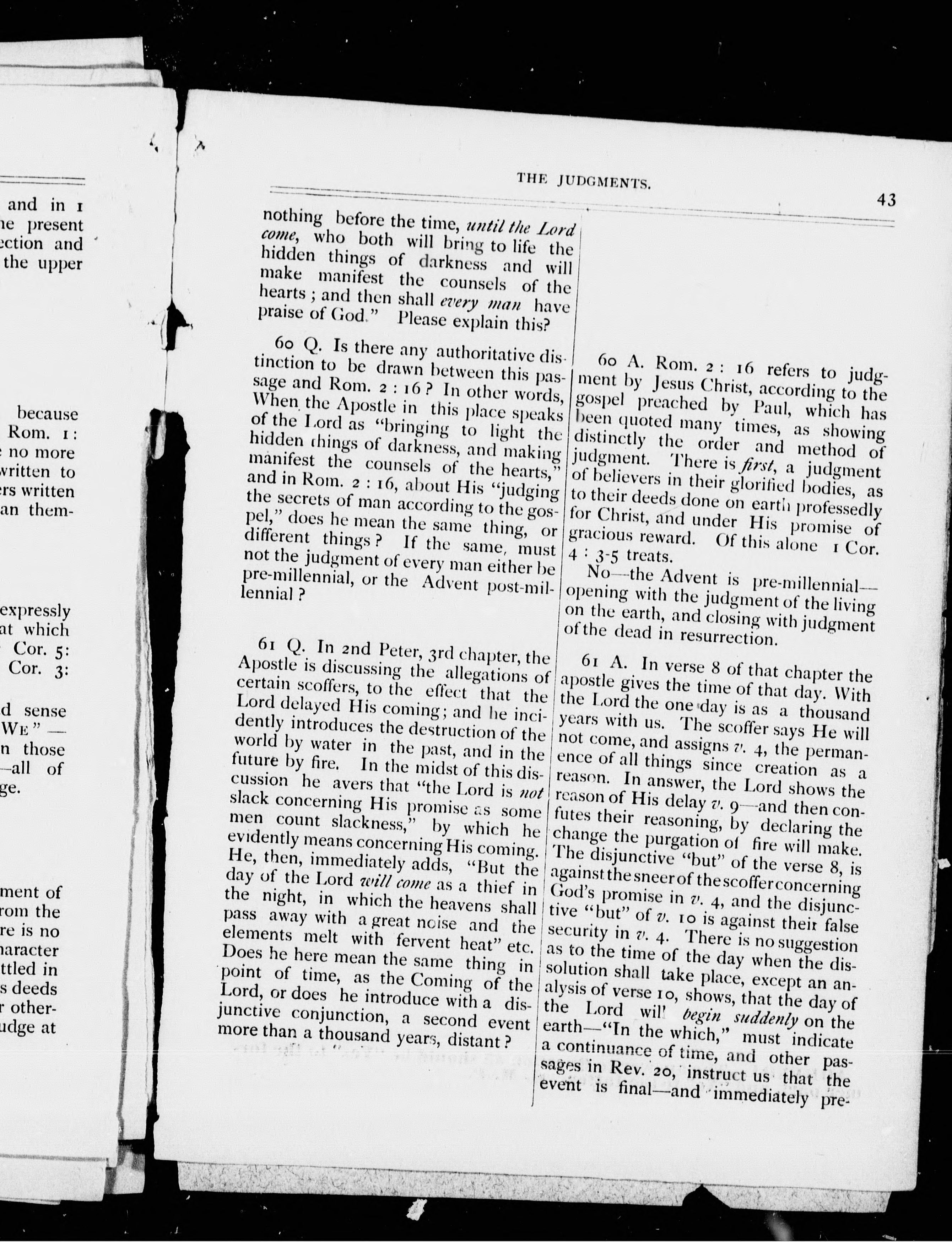 Answers given by H.M. Parsons and John Mutch at a series of meetings held in July 1886 at Parkdale, Ont.--p. [2]