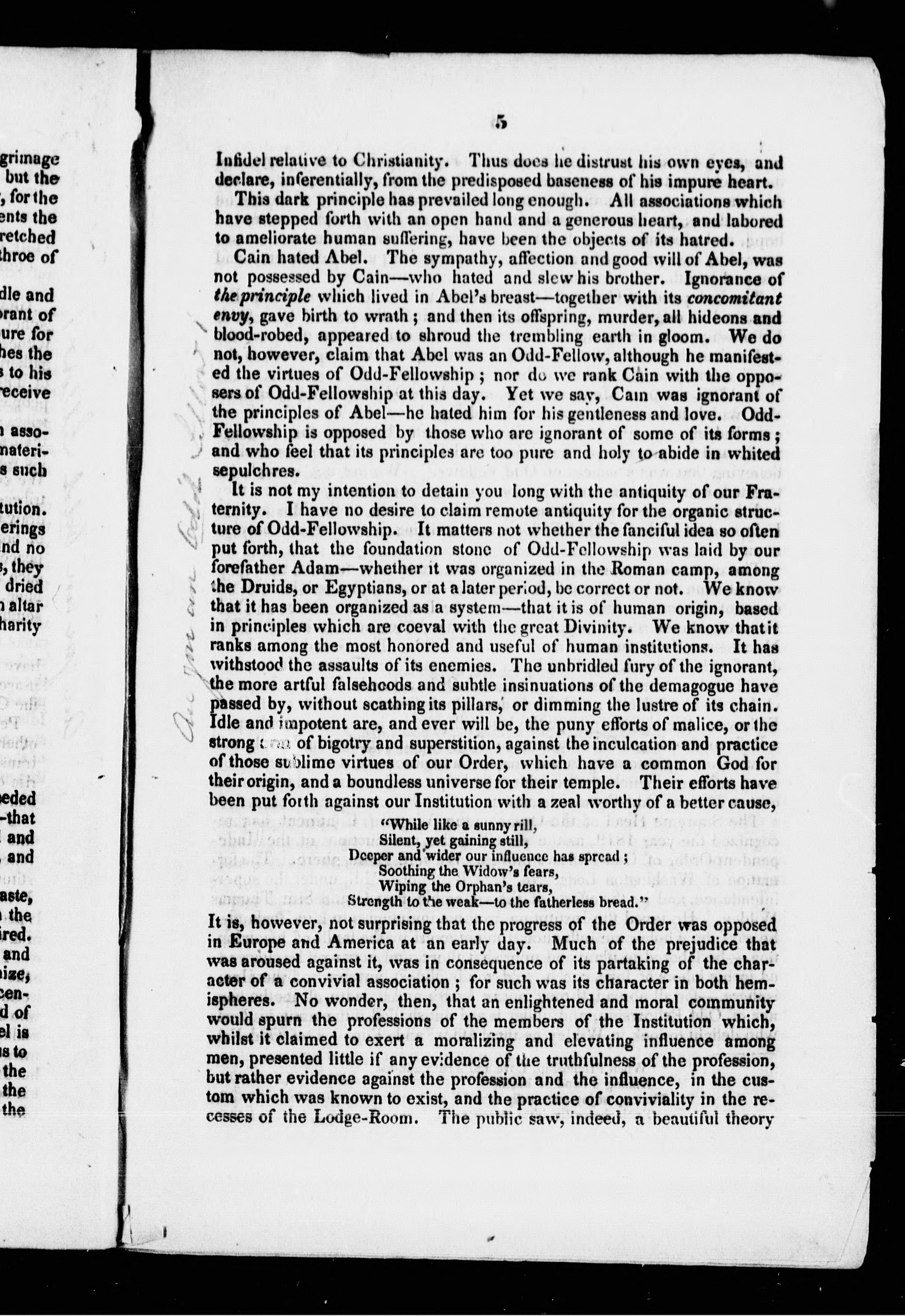 Address delivered before Oriental Lodge no. 7, of the Independent Order of Odd Fellows, on their first anniversary, at Stanstead, July 29, 1846