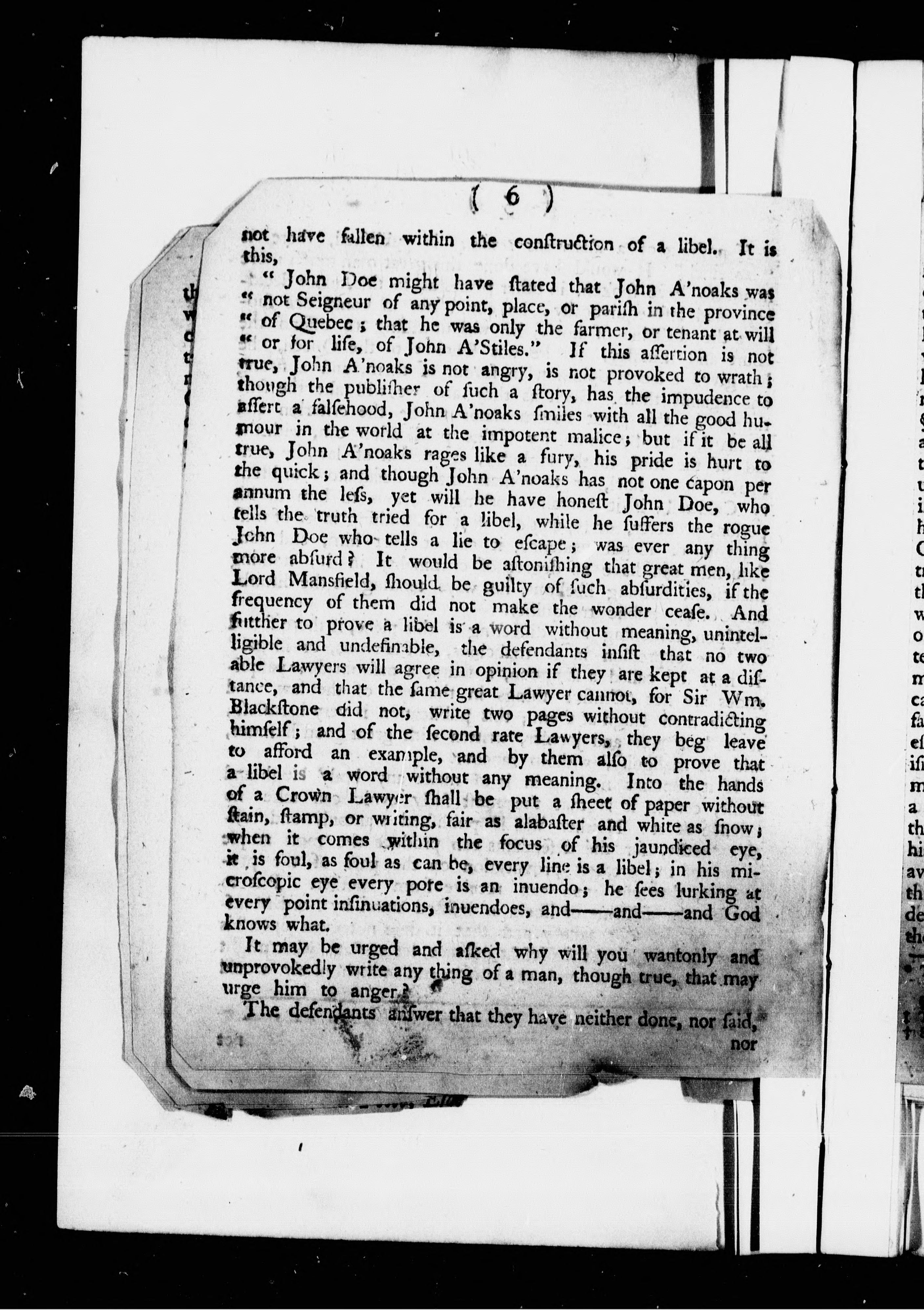 A [de]fence [prepared an]d intended to be delivered at the bar of the Court of King's Bench, held in the city of Quebec, in the month of November, 1790 :