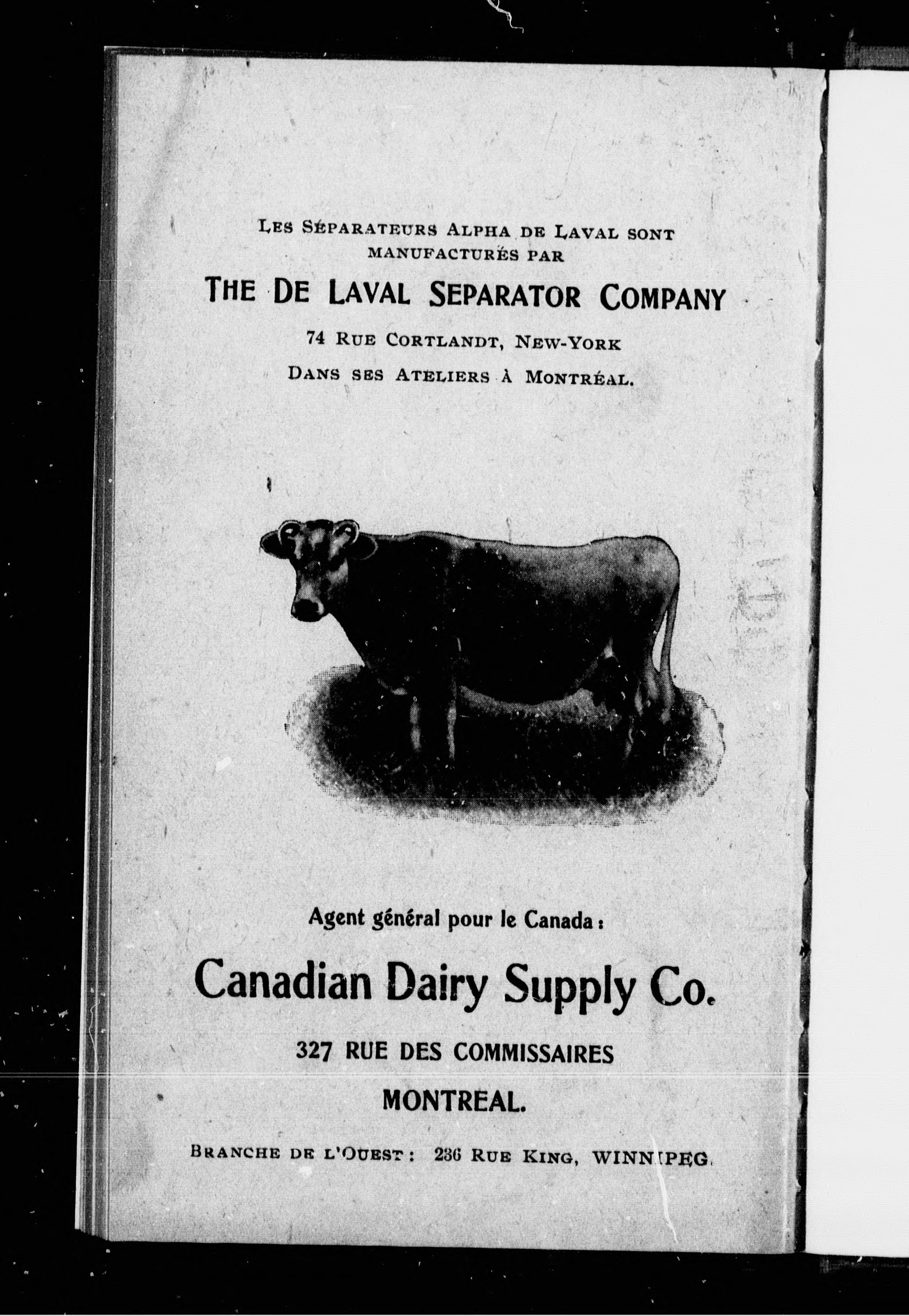 Pamphlet produit par le Canadian Dairy Supply Company.