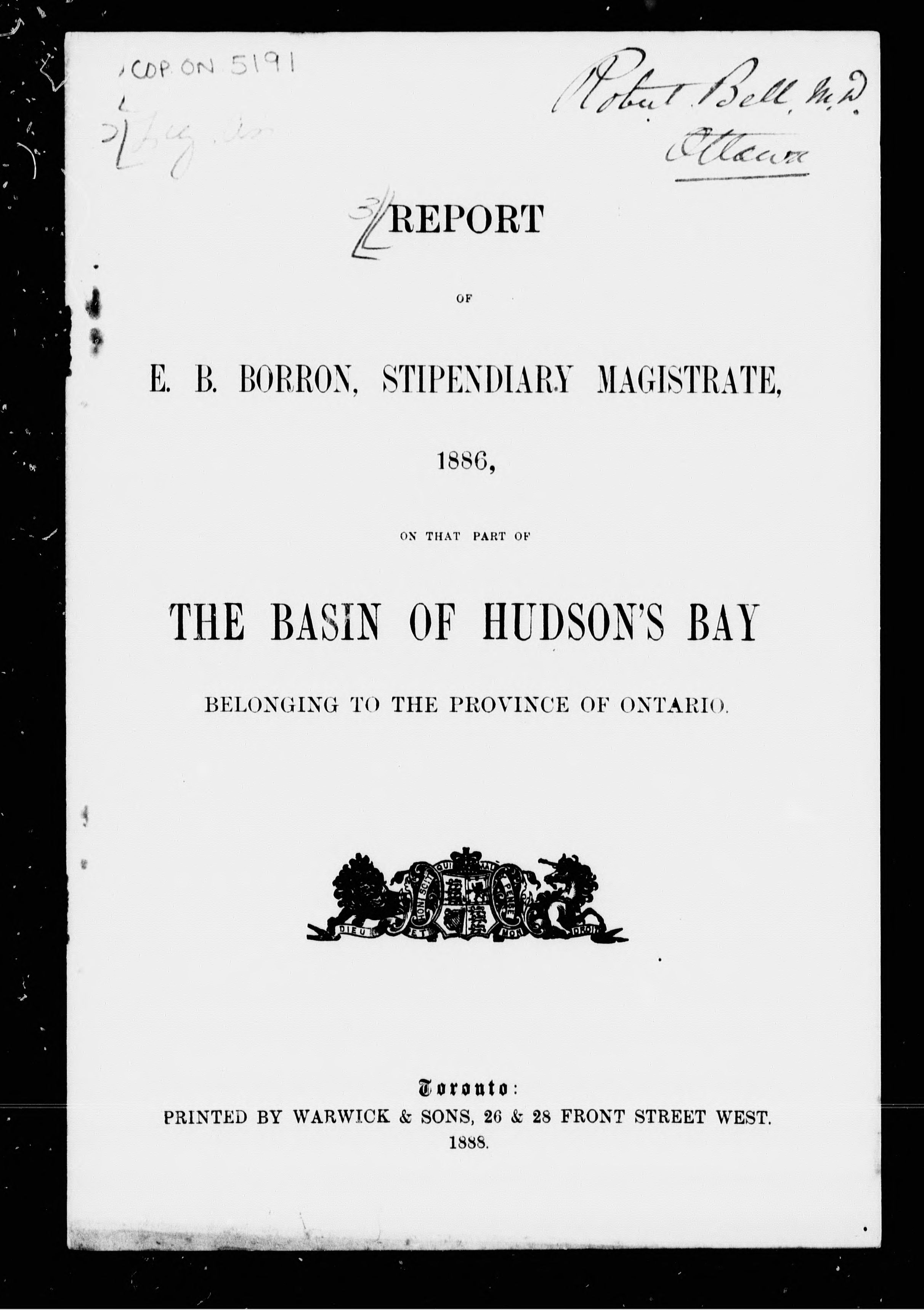 Report of E.B. Borron, stipendiary magistrate, 1886, on that part of the basin of Hudson's Bay belonging to the province of Ontario.