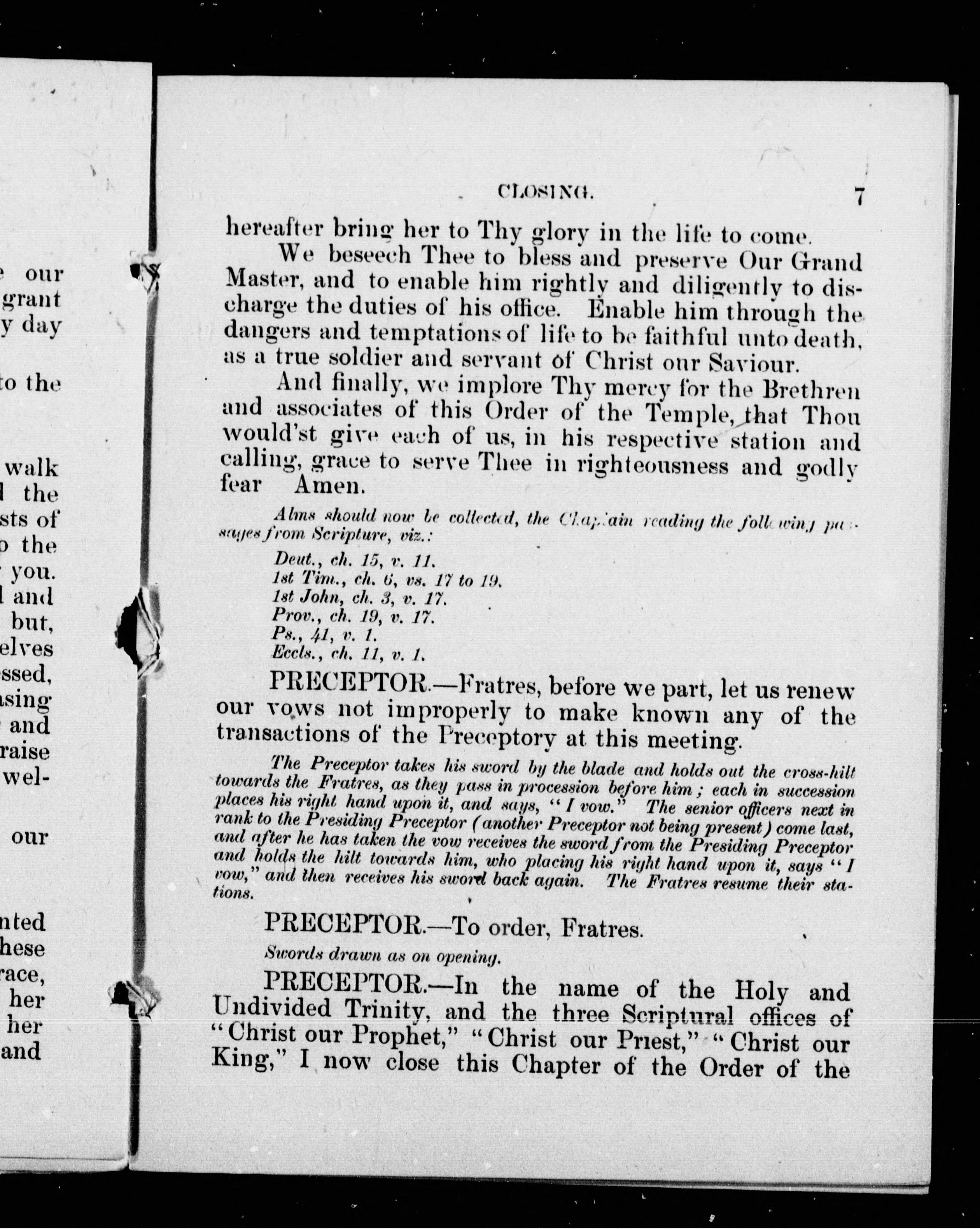 Knights Templar (Masonic Order). Sovereign Great Priory (Canada) -- Rituals.