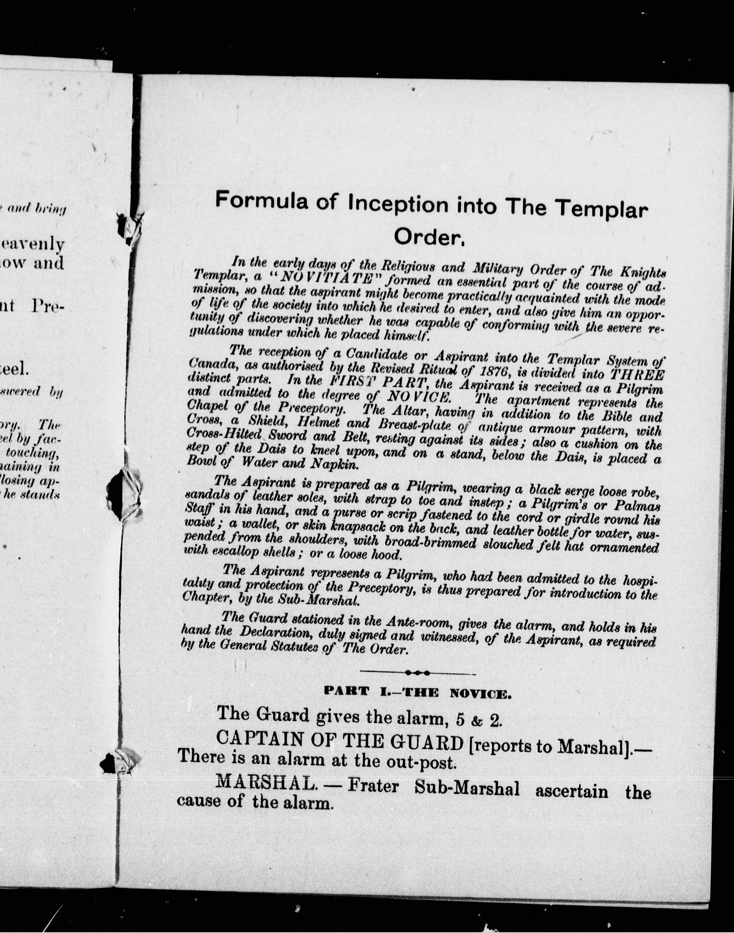Knights Templar (Masonic Order). Sovereign Great Priory (Canada) -- Rituals.